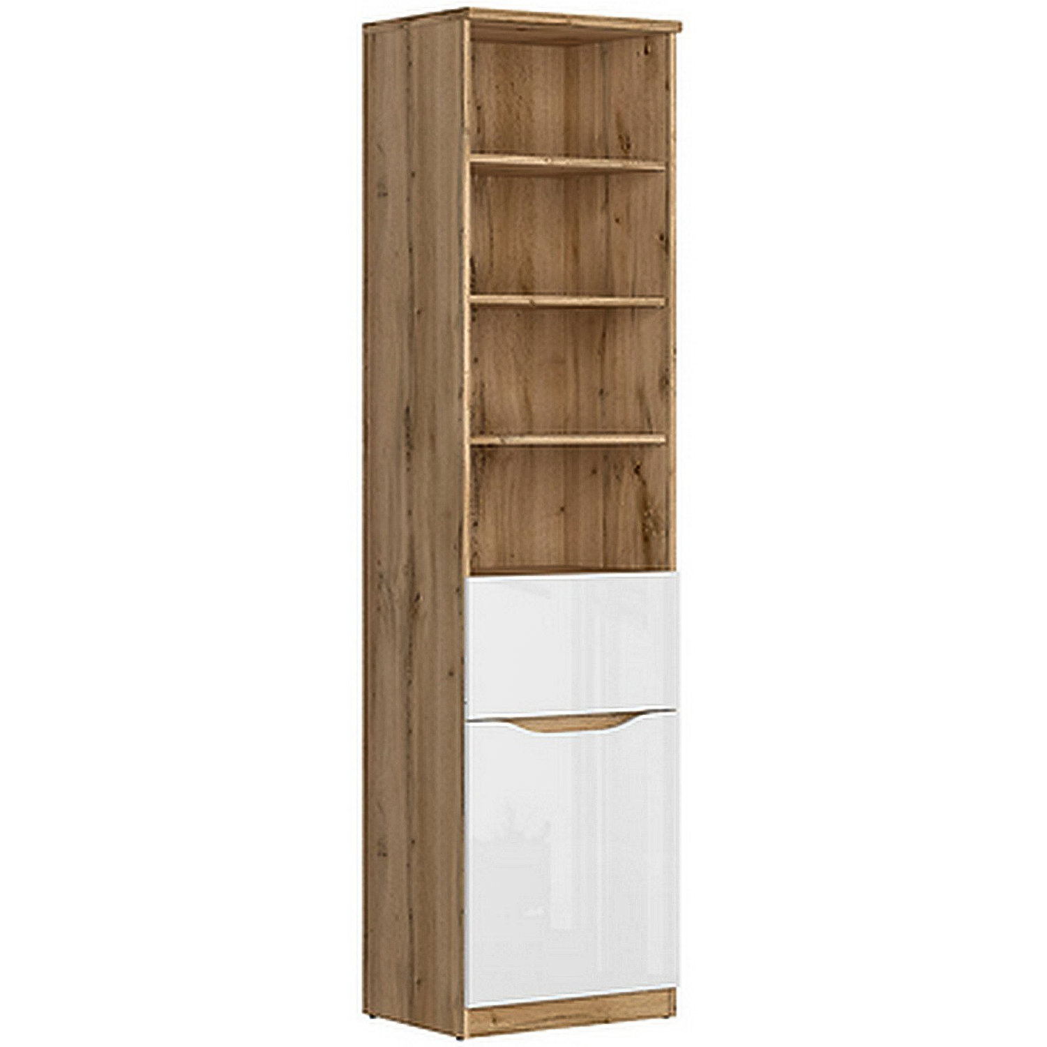 Biblioteca Nuis cu 3 rafturi, un sertar si o usa, alb lucios, 39.5X50X197.5 cm