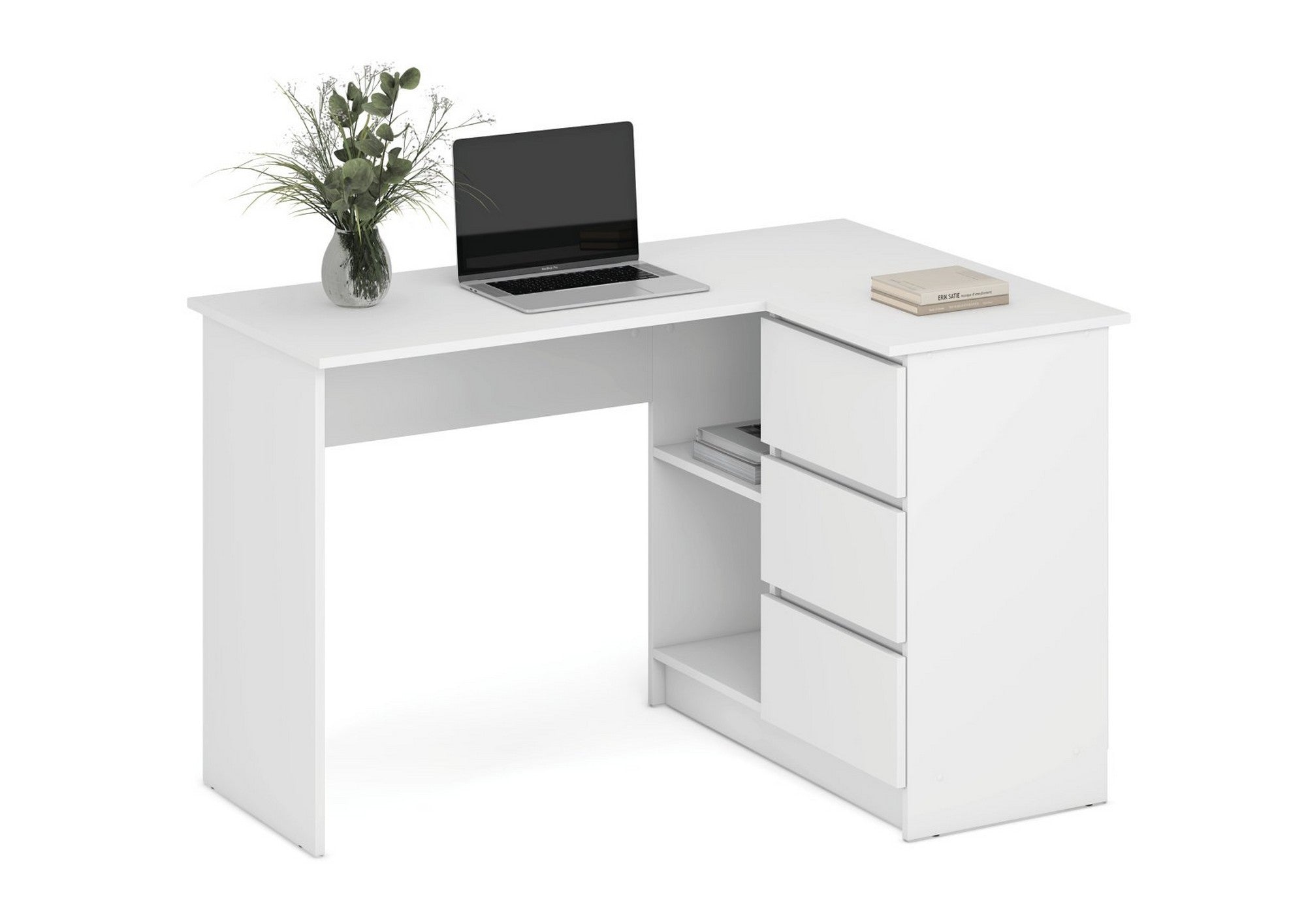 Birou BEGA, alb, PAL laminat, 124x85x76 cm