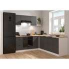 Set bucatarie JUNONA LINE, gri grafit/alb, PAL, 200x220 cm, cu blat stejar artisan