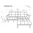 Canapea extensibila CORNELIUS, gri/negru, stofa clasica/lemn, cu taburet, 200x153/167x80 cm