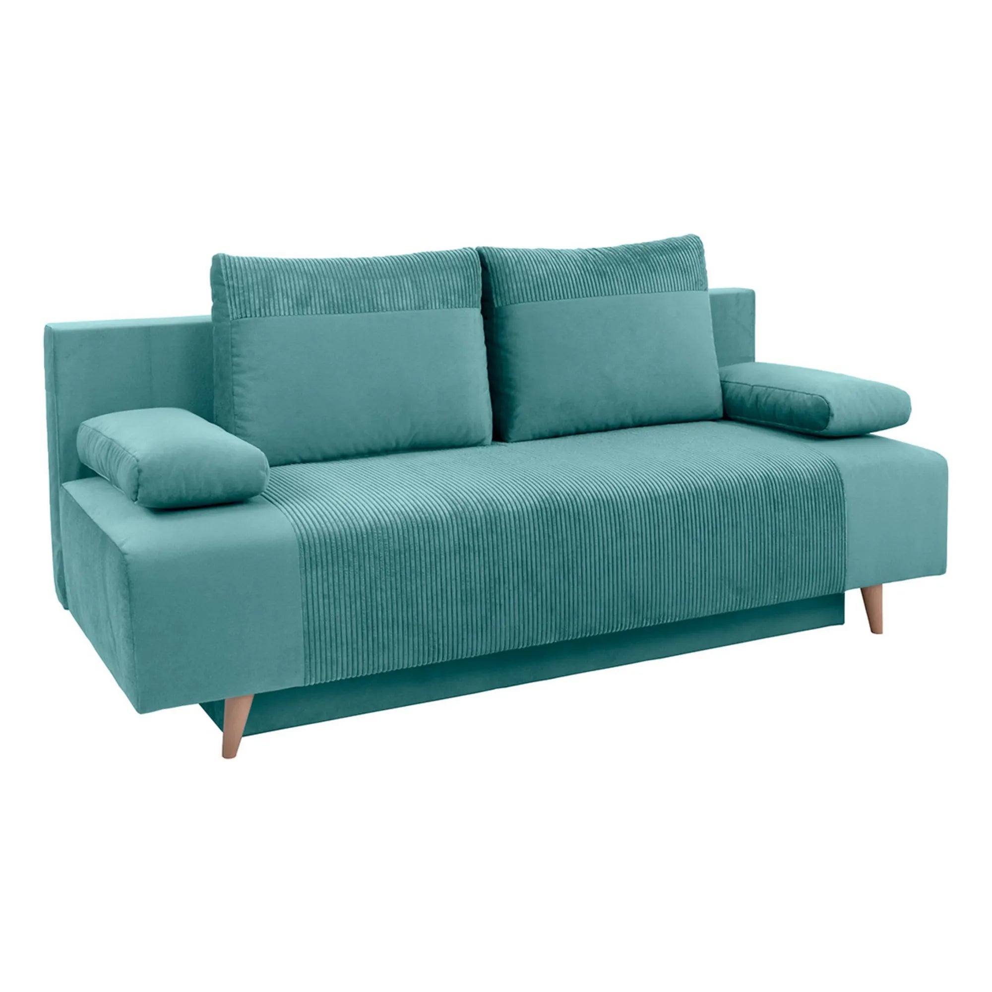 Canapea extensibila LEON, stofa catifelata turcoaz - Poso 26, 191x89x92 cm