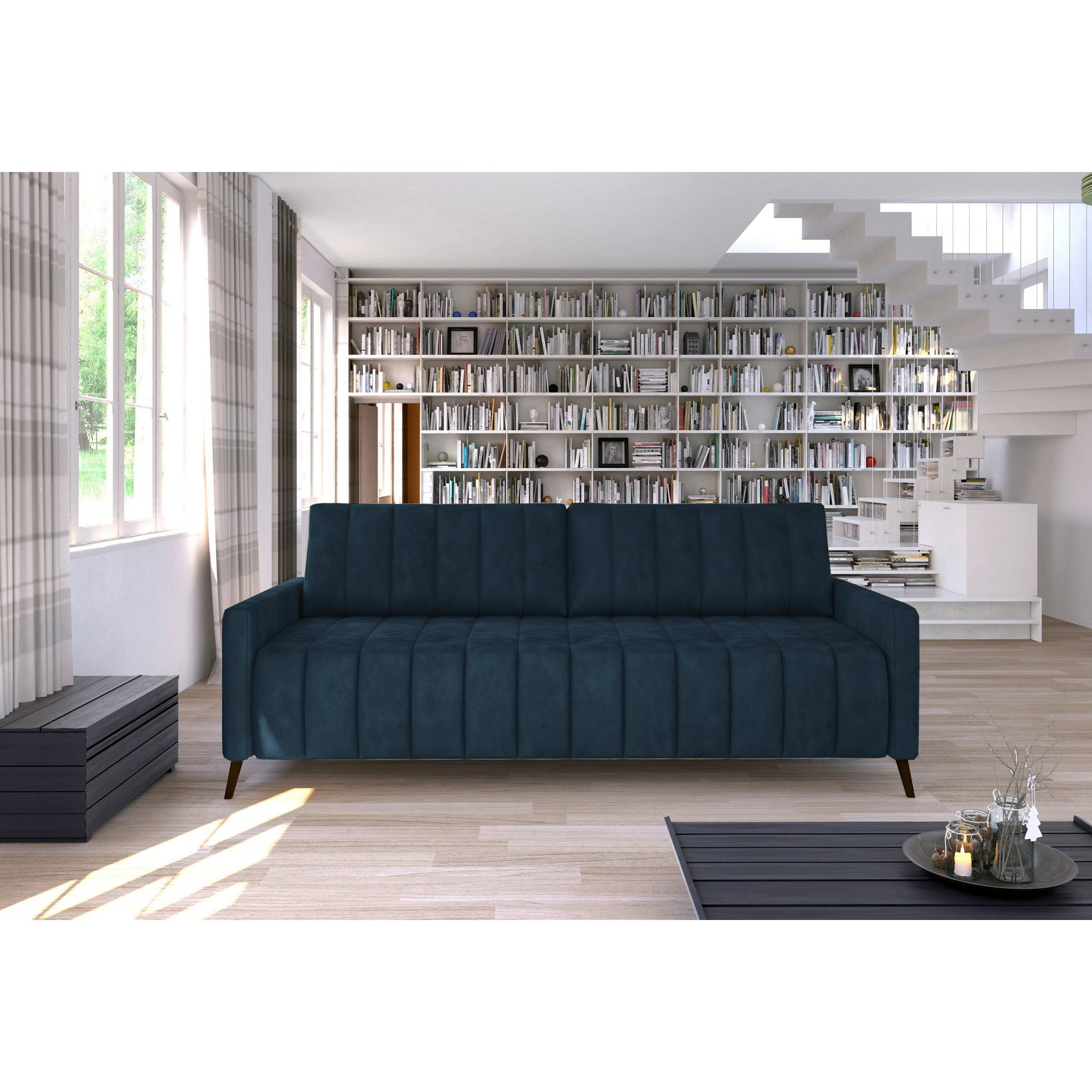 De ce? Pentru ca aceasta canapea din material textil are niste materiale speciale, foarte rezistente la uz intens. In plus, stilul avangardist este subliniat de liniile proeminente si picioarele decorative inchise la culoare.