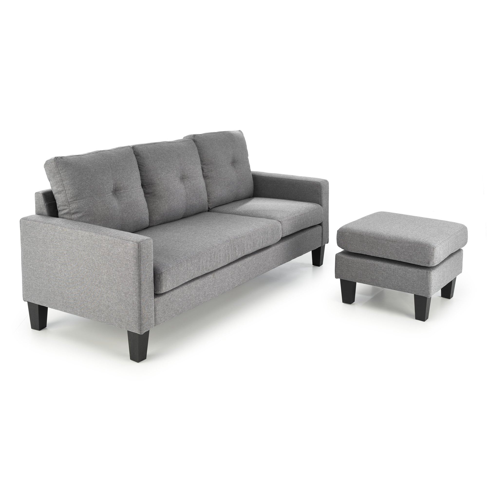Canapea GERSON, gri, stofa clasica/polipropilena, cu taburet, 180x130x80 cm