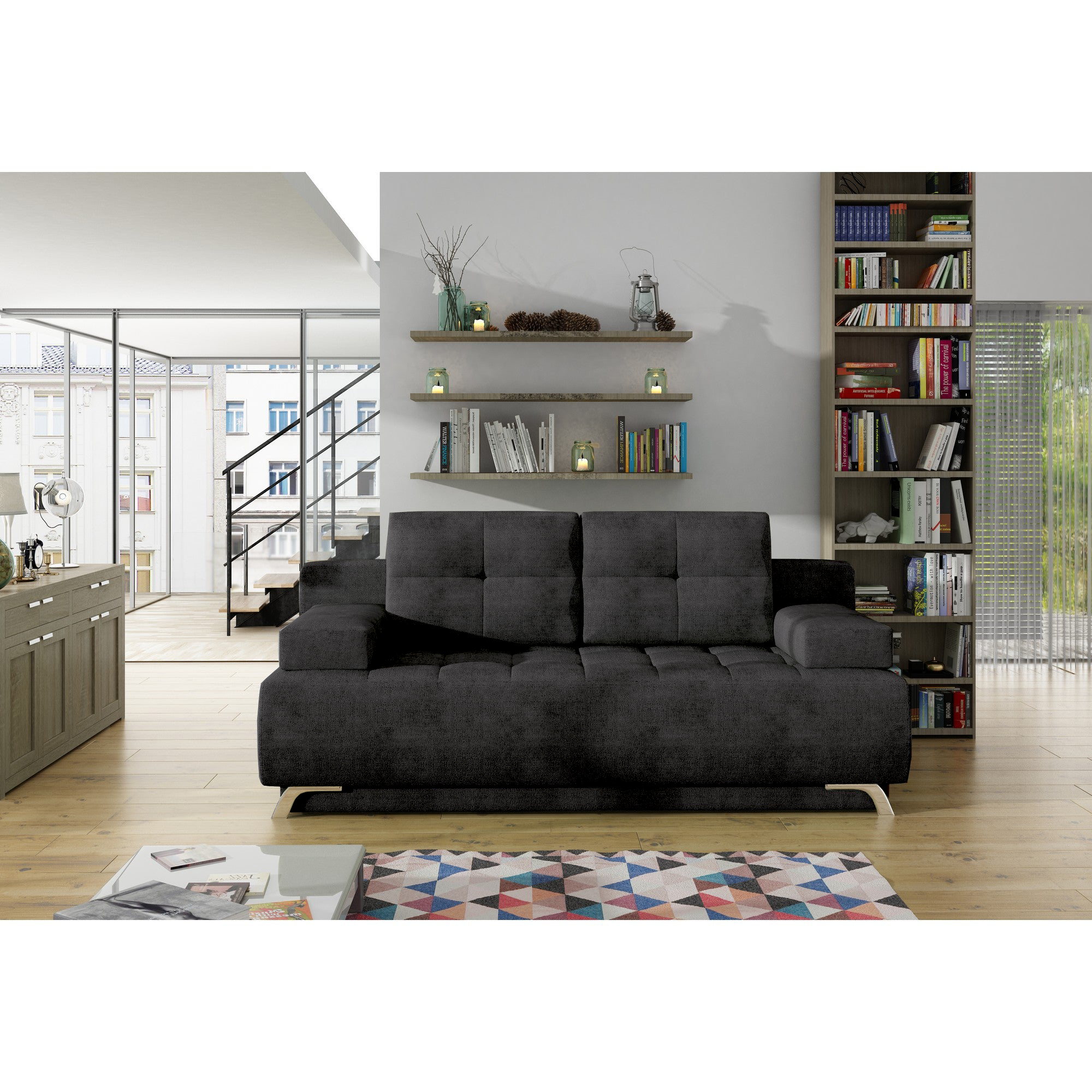 Canapea OSLO, stofa catifelata gri grafit - Palladium 19, 197x94x90 cm, lada depozitare, extensibil