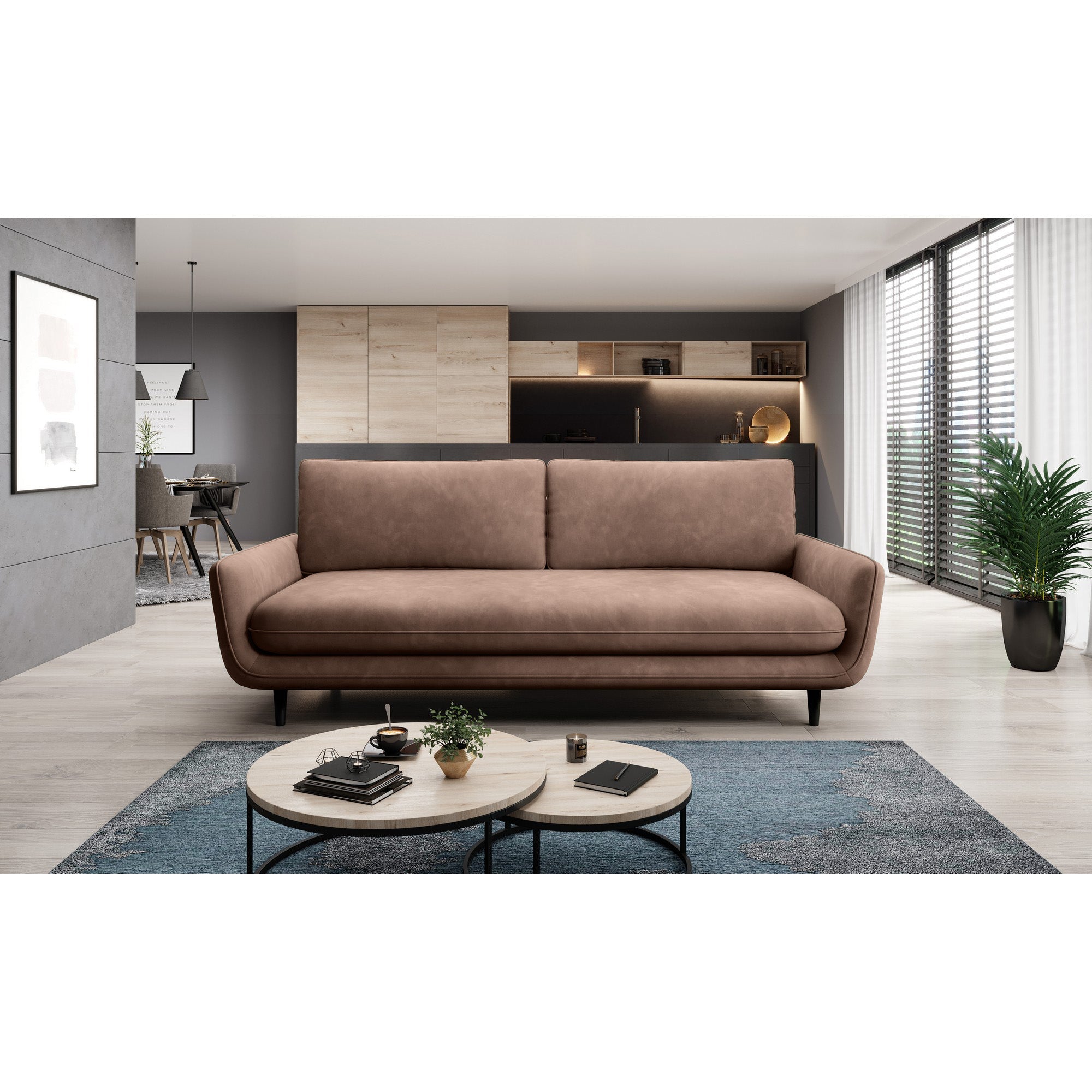 Canapea SOLANO, stofa catifelata maro - Salvador 3, 230x107x73/85 cm, functie de dormit, lada depozitare