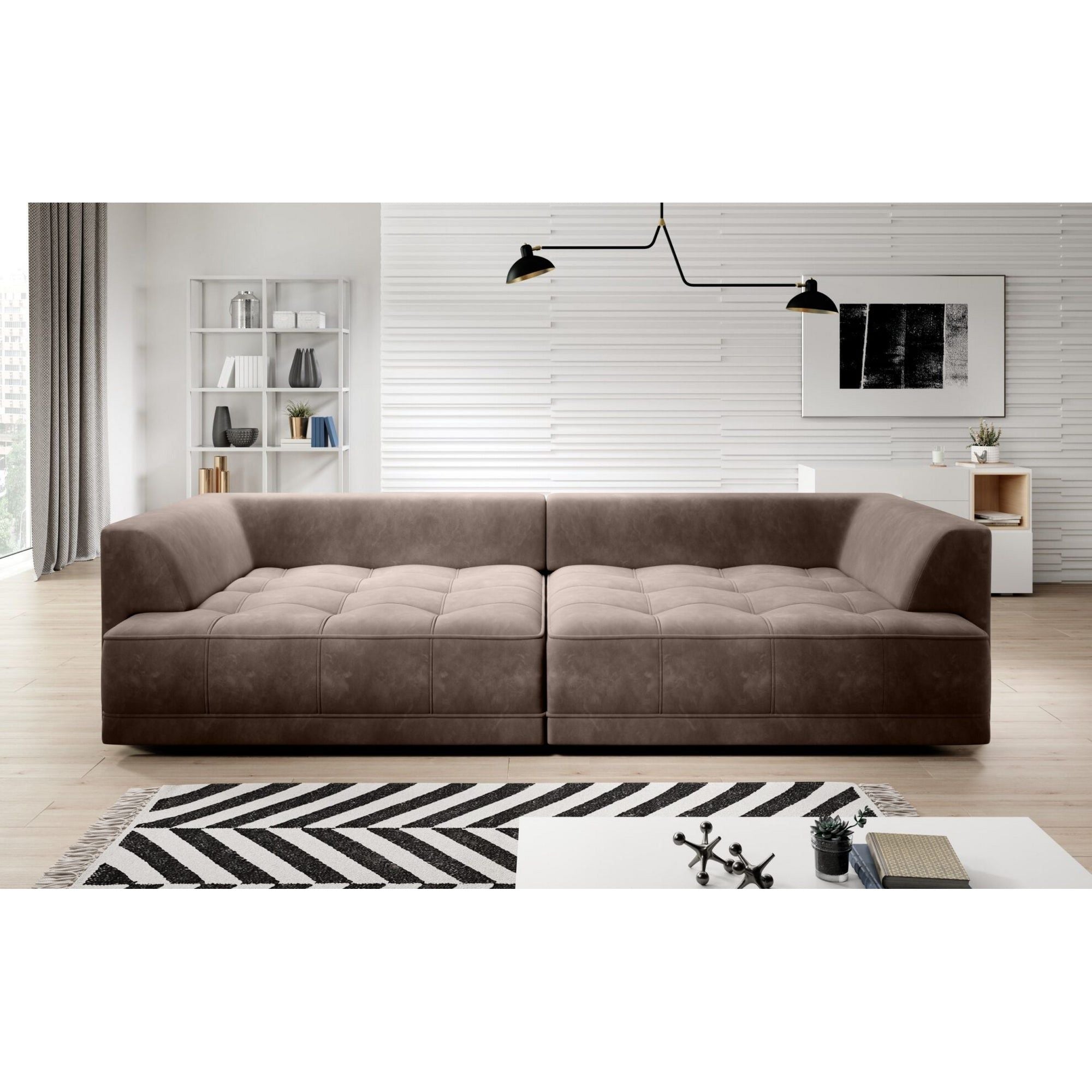 Canapea TIGA, stofa catifelata bej - Element 17, 302x136x88/72 cm