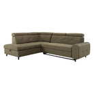 Coltar extensibil MATRAS, sezlong stanga, stofa catifelata verde olive - Letto 38, cu lada depozitare si tetiere reglabile, 263x205x98 cm