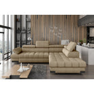 Coltar extensibil SELVA L, sezlong dreapta, stofa catifelata bej - Whisper 03, lada depozitare, tetiere reglabile, 263x97/223x75/95 cm