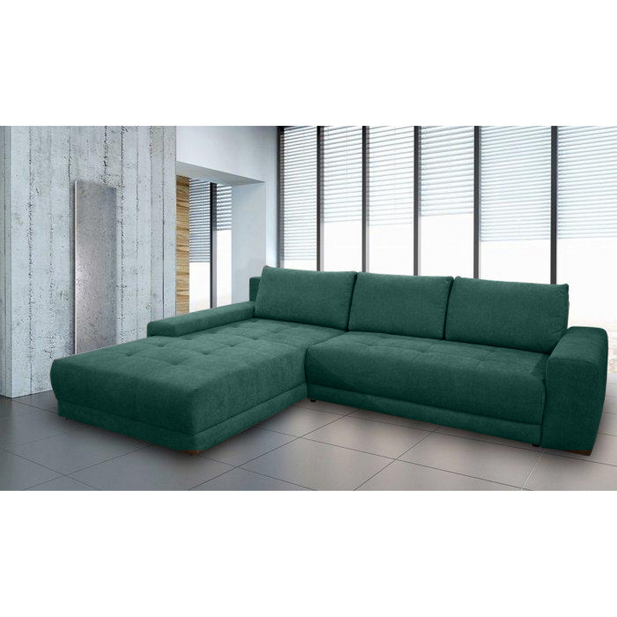 Coltar extensibil universal ADRIA, cu lada depozitare, stofa catifelata verde - MONOLITH 37, 310x213x88 cm