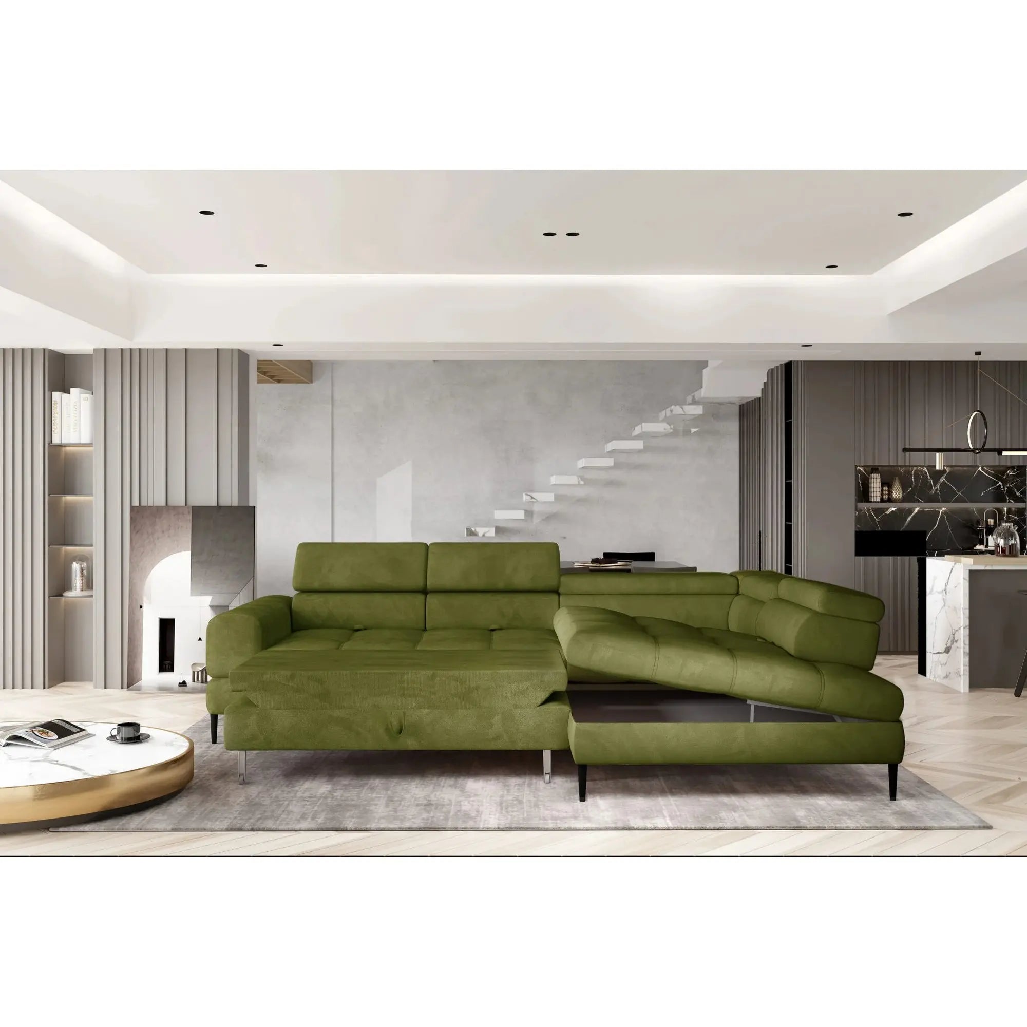 Coltar extensibil VOSS L, personalizabil, cu lada depozitare, 285x218x93 cm