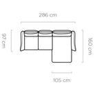 COLTAR STELVIO, 286X160X103/50 CM (LxAxH), FIX, SISTEM RECLINER