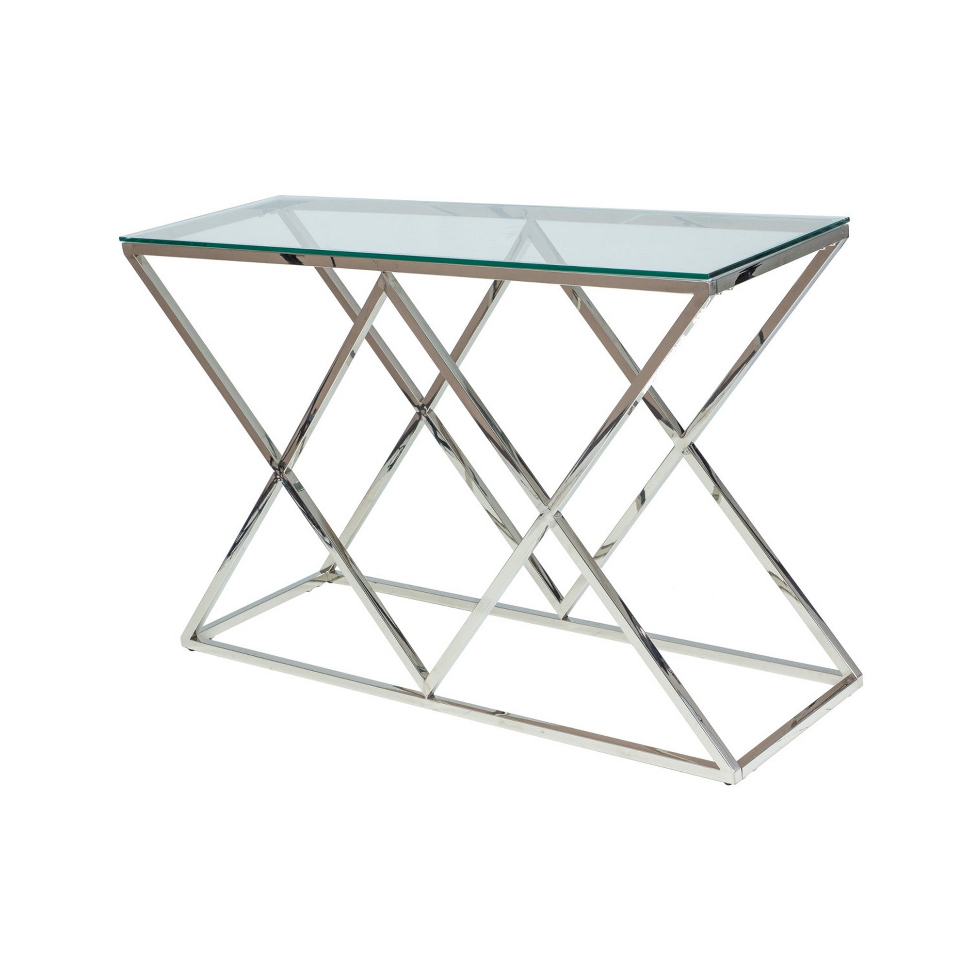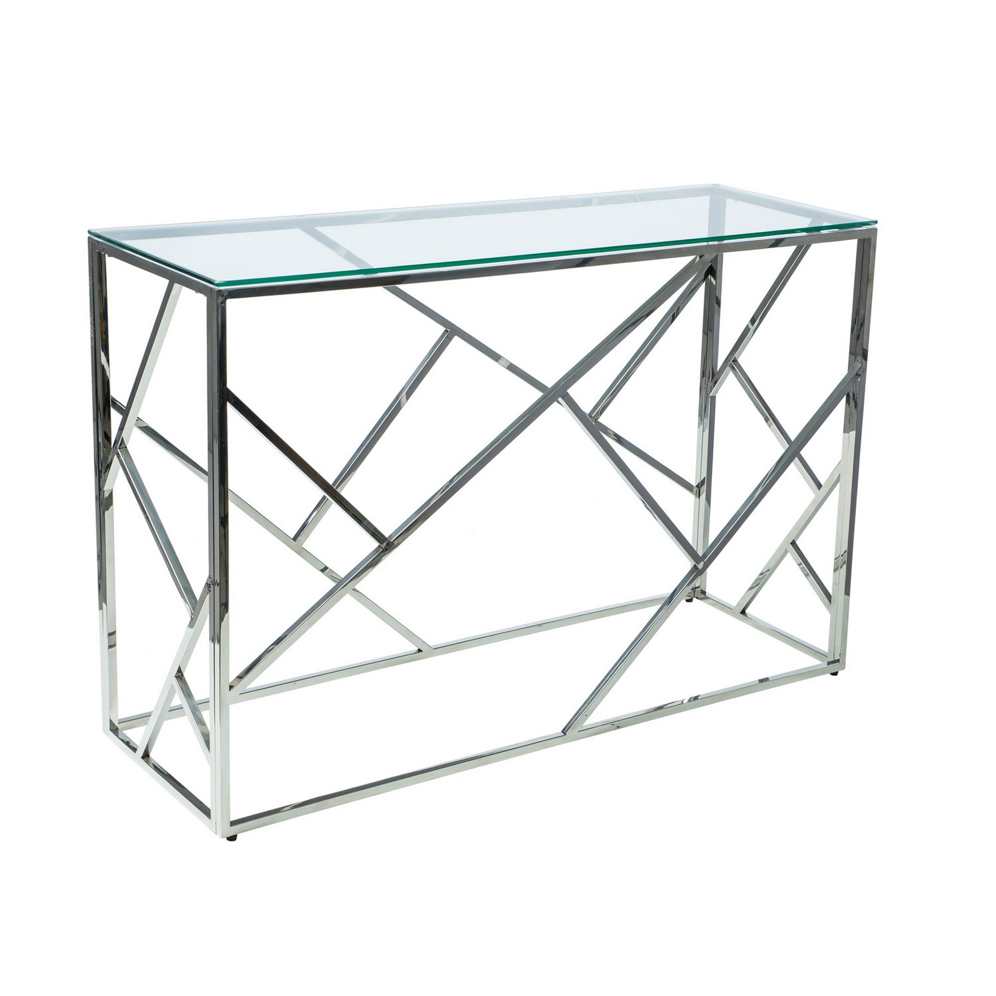 Masa consola living Zegna C, metal cromat si sticla securizata, 120X40X78
