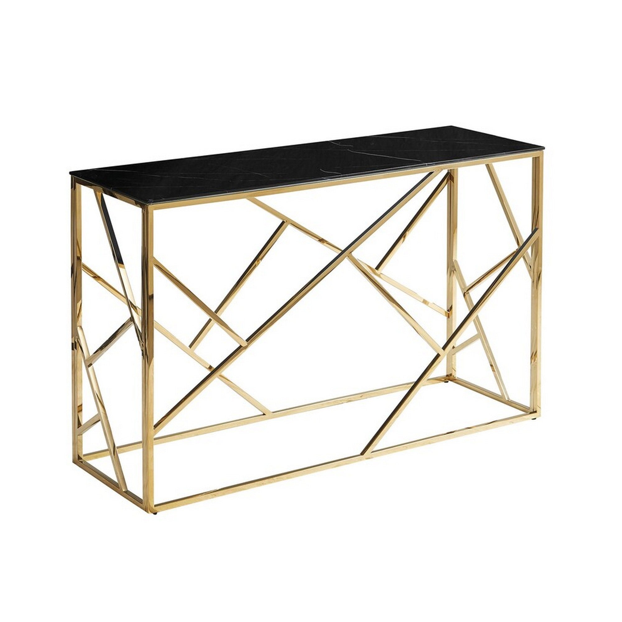 Consola ESCADA C II, negru/auriu, sticla/otel, 120x40x78 cm