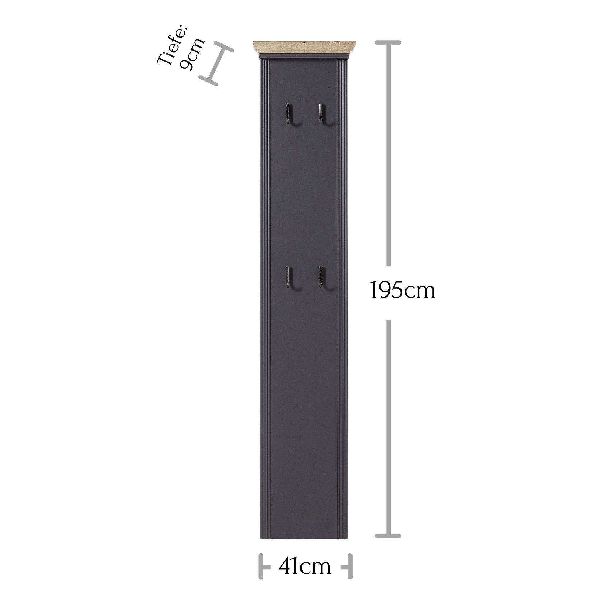 Cuier JASMIN, gri grafit/stejar artisan, PAL, 41x9x195 cm