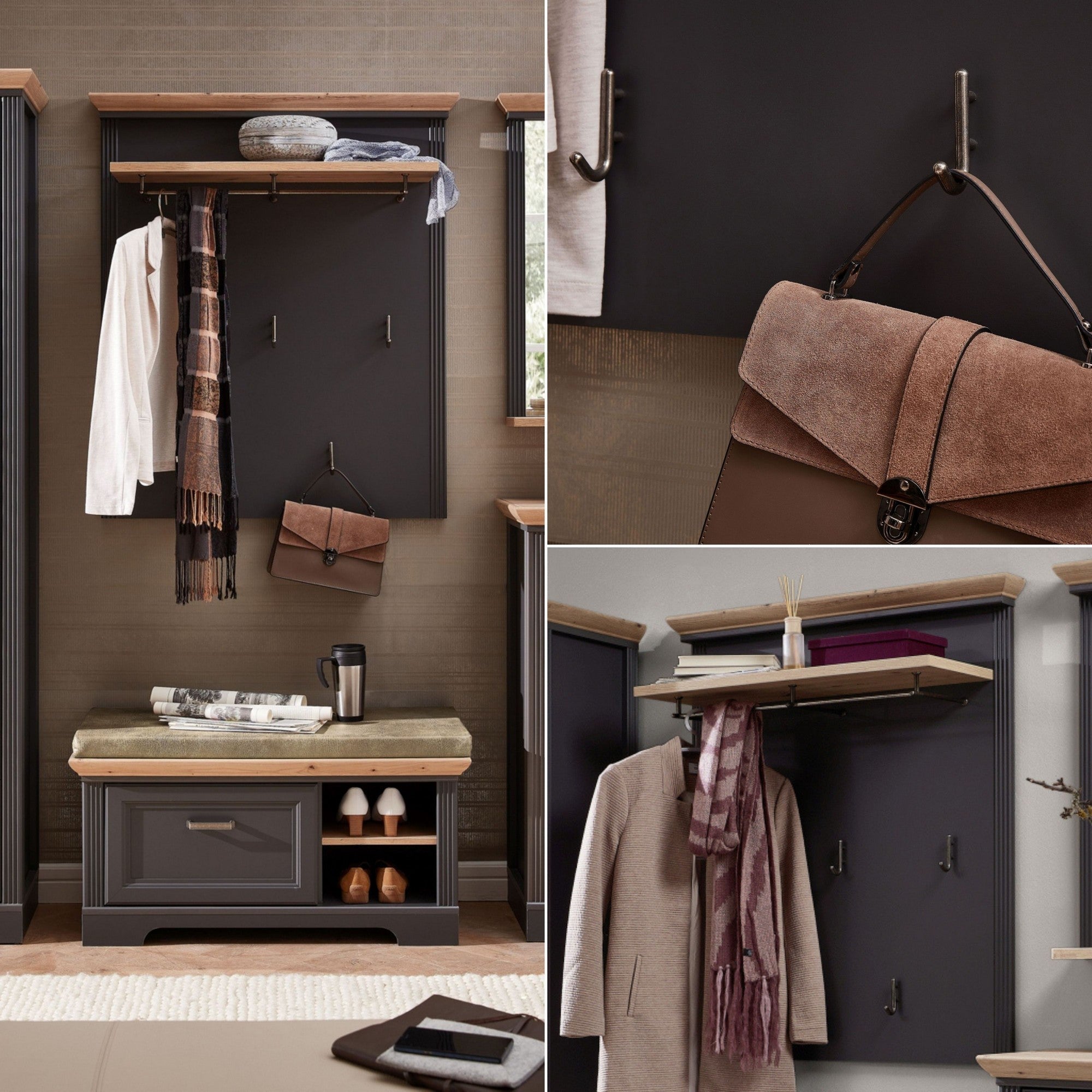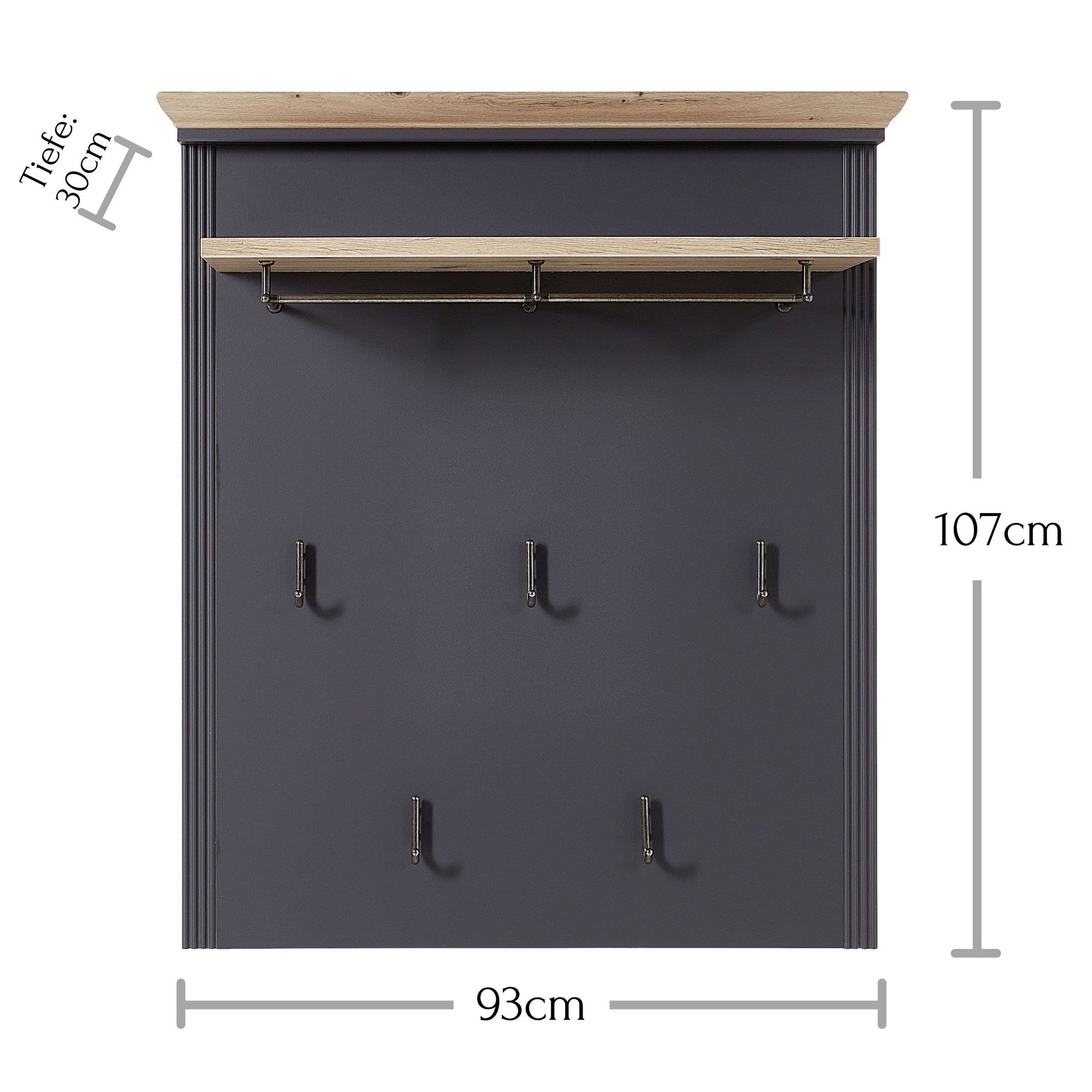 Cuier JASMIN, gri grafit/stejar artisan, PAL, 93x30x107 cm