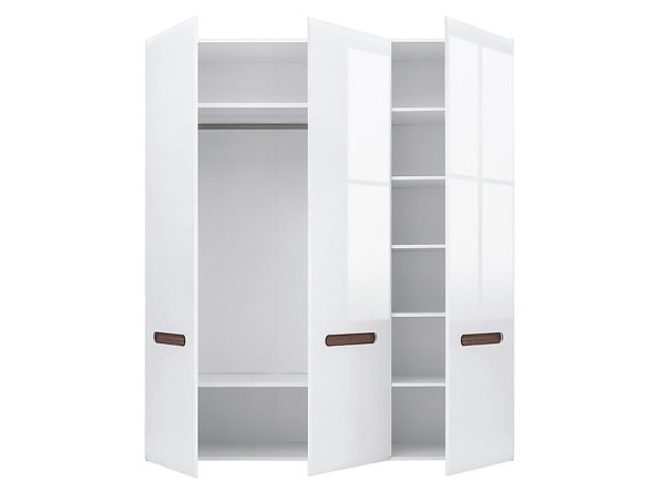 • Dulapul cu trei uși Azteca Trio iti permite să depozitezi confortabil toate articolele de îmbrăcăminte. La dispoziția ta, ai o parte de dulap ce contine o bară pentru umerase și două rafturi (in partea de sus și de jos) și o parte a dulapului care este impartita în mod simetric de cinci rafturi.
