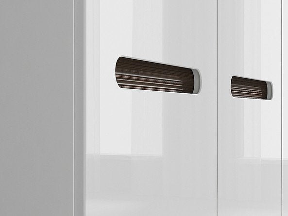 • Mânerul original magic wenge sub forma unei benzi groase decorative transforma dulapul dintr-o piesă de mobilier simplă, geometrică, intr-o piesa ce iese din multime