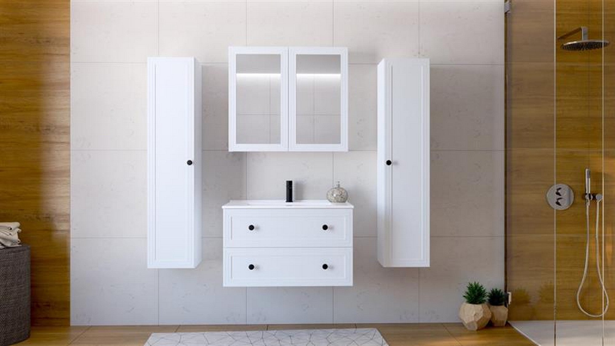 Dulap baie TORETO, alb mat, PAL laminat, cu oglinzi, 80x15x70 cm