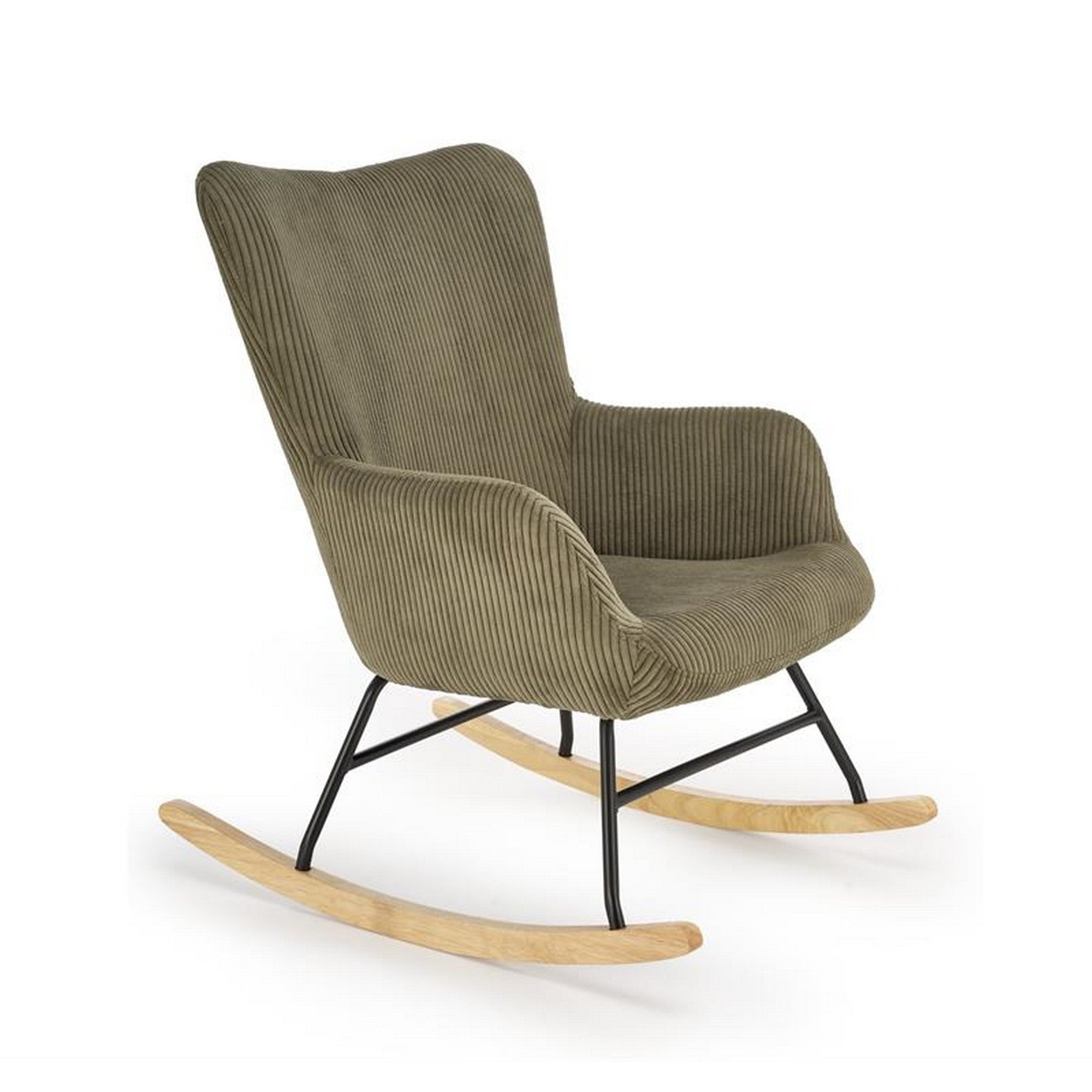 Fotoliu balansoar BELMIRO, verde/negru/stejar, stofa catifelata/metal/lemn, 72x88x98 cm