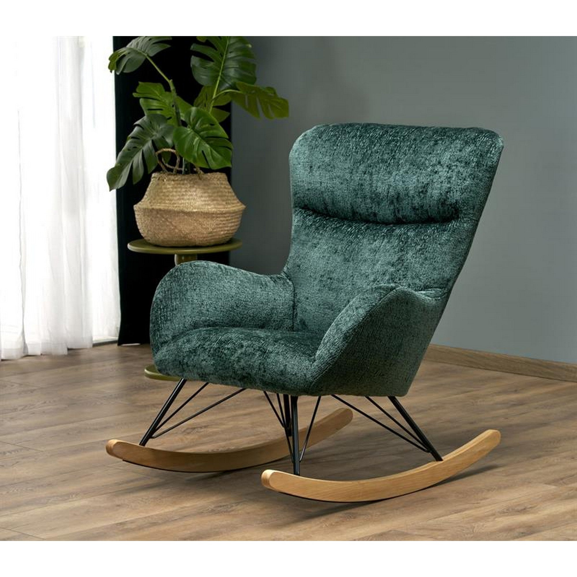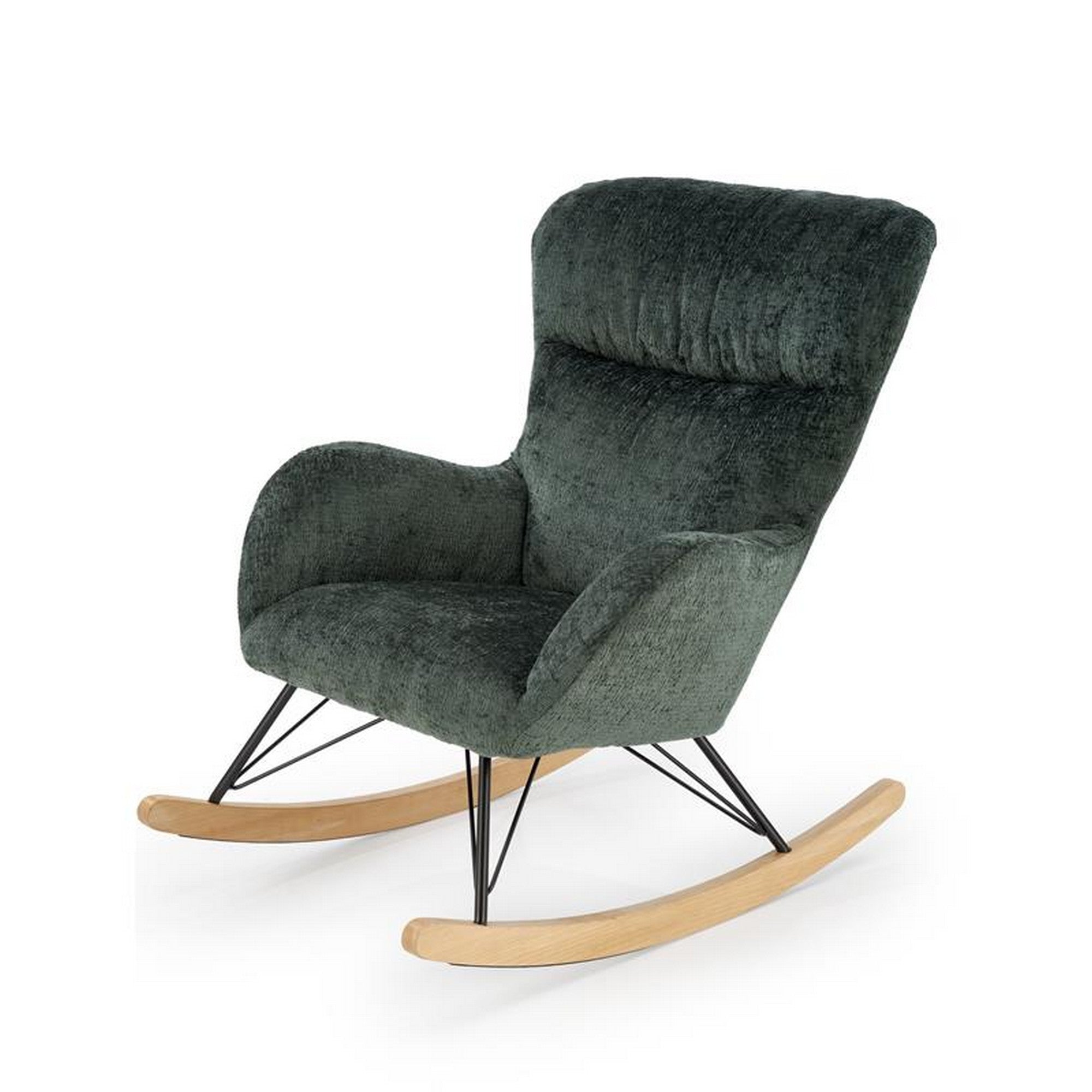 Fotoliu balansoar CASTRO, verde/negru/stejar, stofa/metal/lemn, 77x106x92 cm
