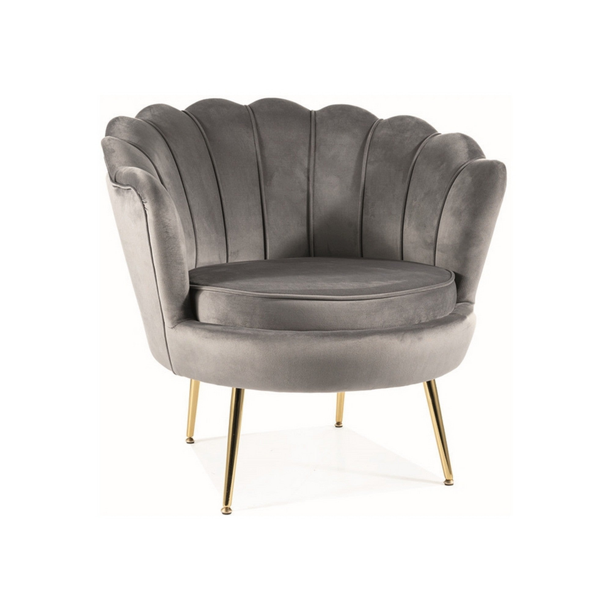 Fotoliu CAMELLIA 1, stofa catifelata gri - Bluvel 14, 81x76x77 cm