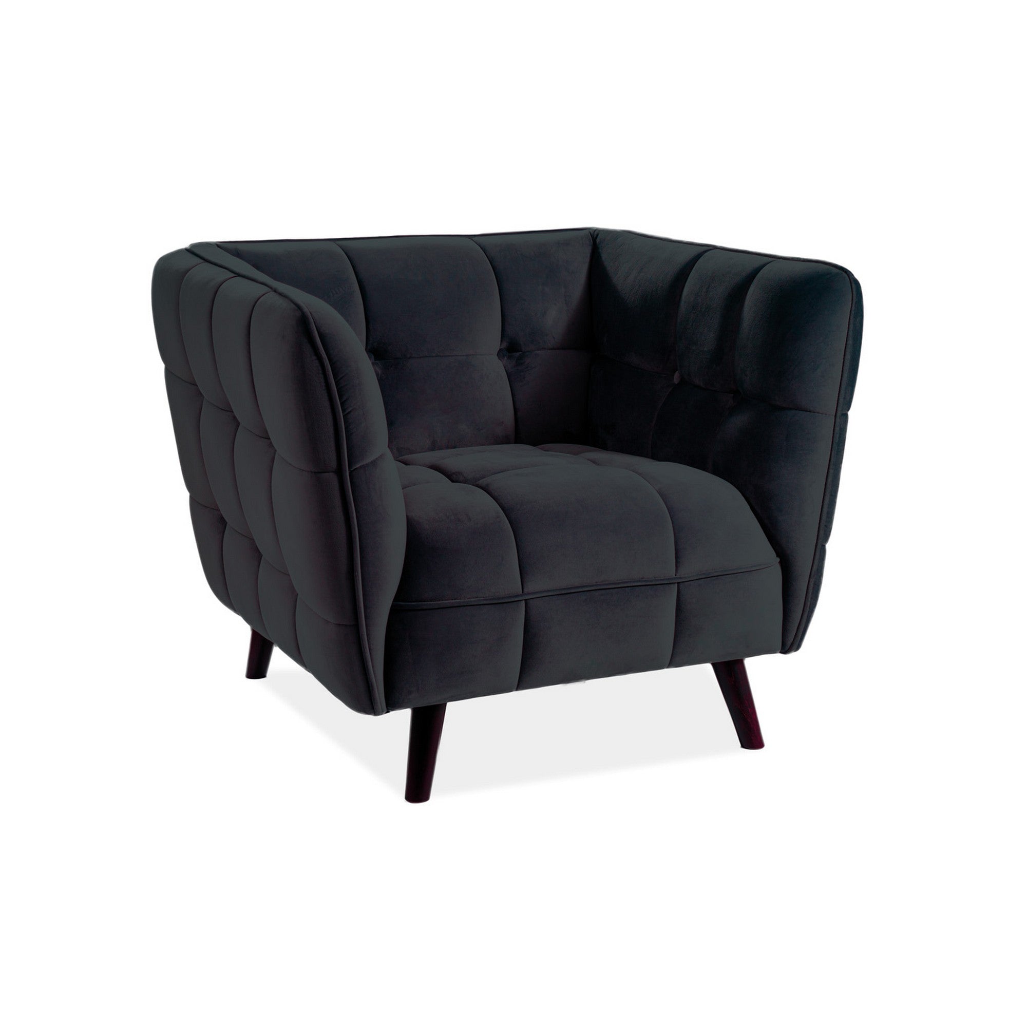 Fotoliu CASTELLO, stofa catifelata neagra, 92x85x78