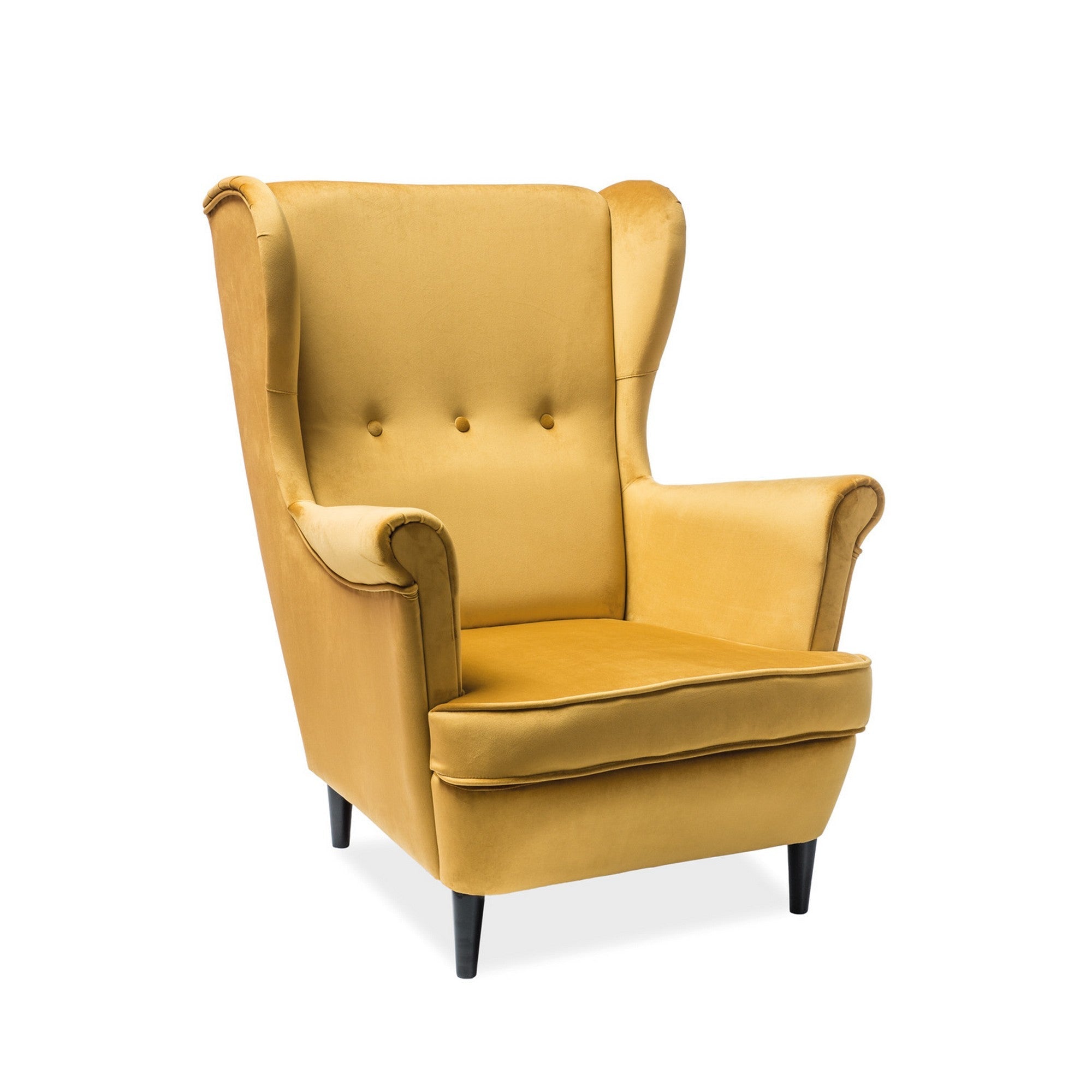 Fotoliu fix tapitat Lord, stofa catifelata curry, 82X92X101 cm