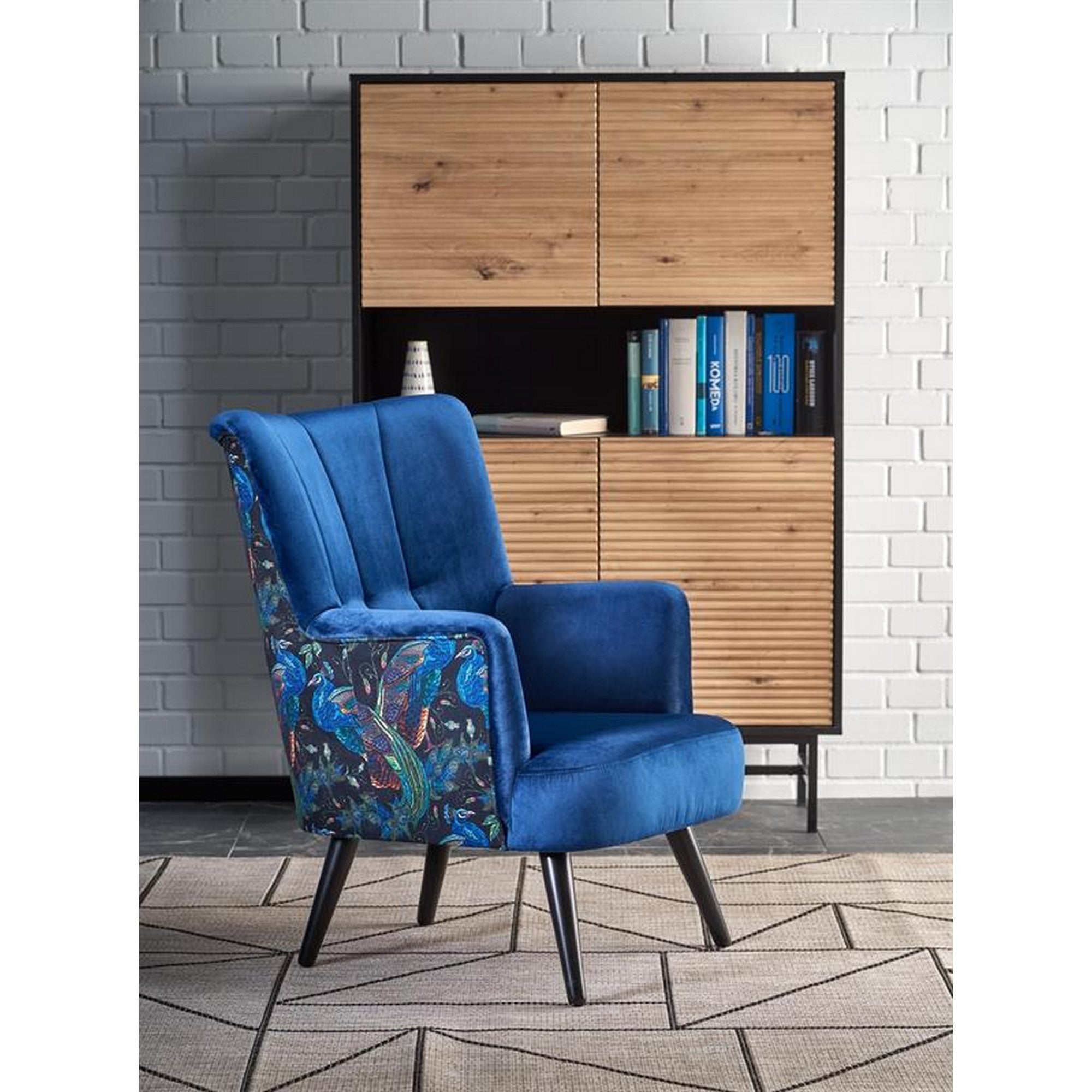 FOTOLIU PAGONI, ALBASTRU, STOFA CATIFELATA, 67X82X95 CM
