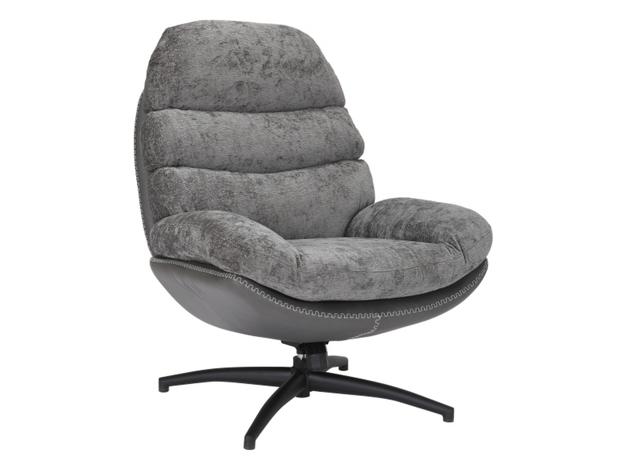 Fotoliu rotativ GISELLE, gri, stofa/piele ecologica/metal, 77x90x101 cm
