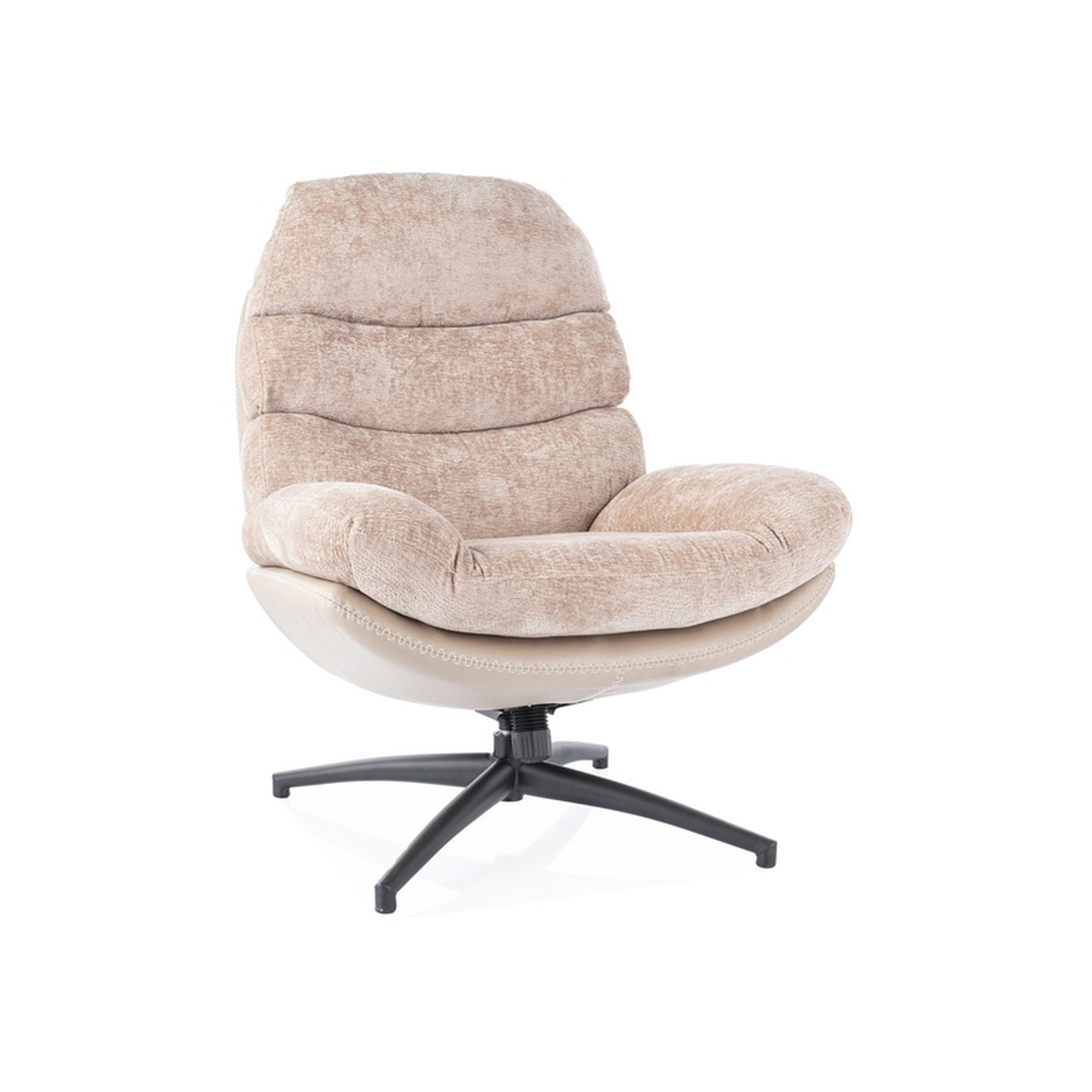 Fotoliu rotativ GISELLE, roz/bej, stofa clasica/piele ecologica/metal, 77x90x101 cm