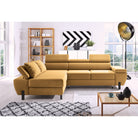 Spatarul coltarului este inalt si prevazut cu tetiere reglabile, fiind perfect pentru relaxare pe timp de zi.