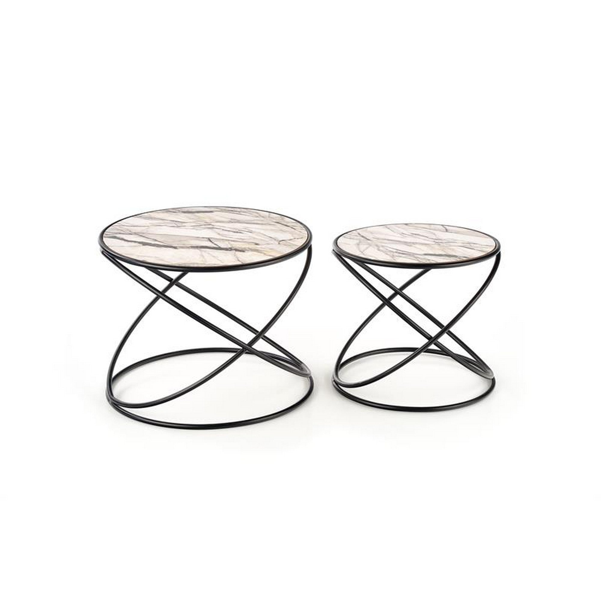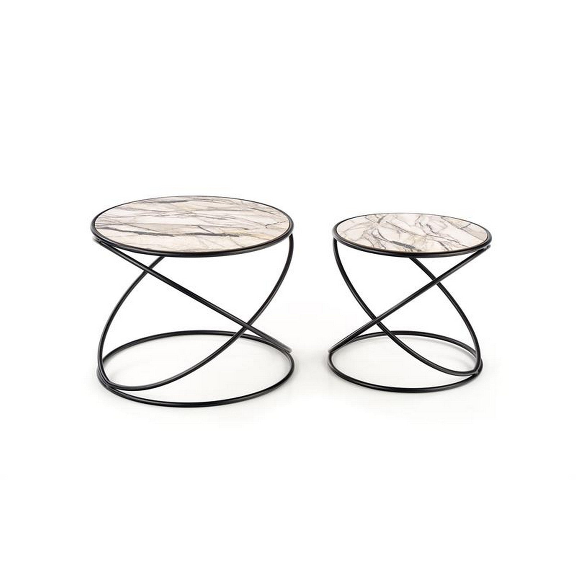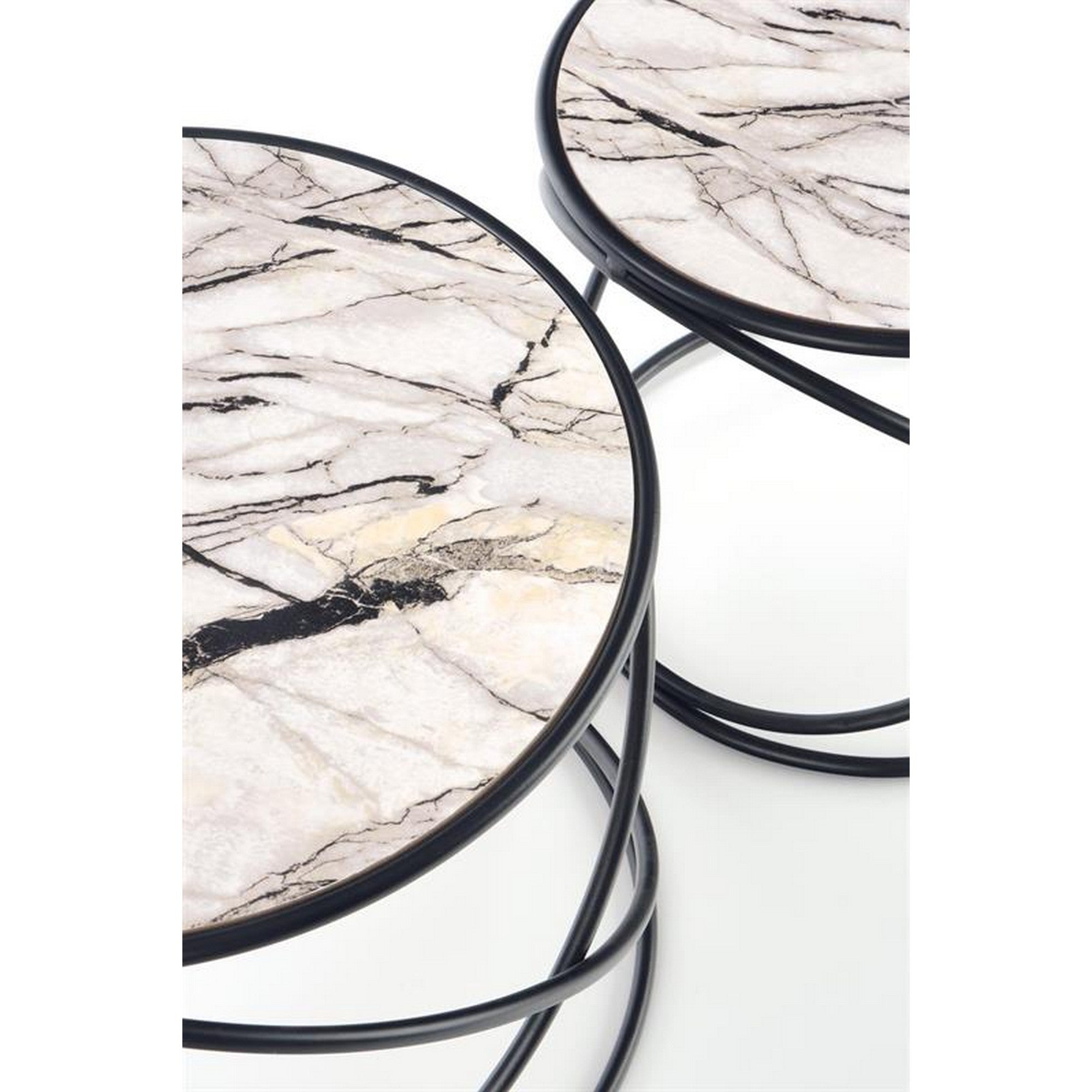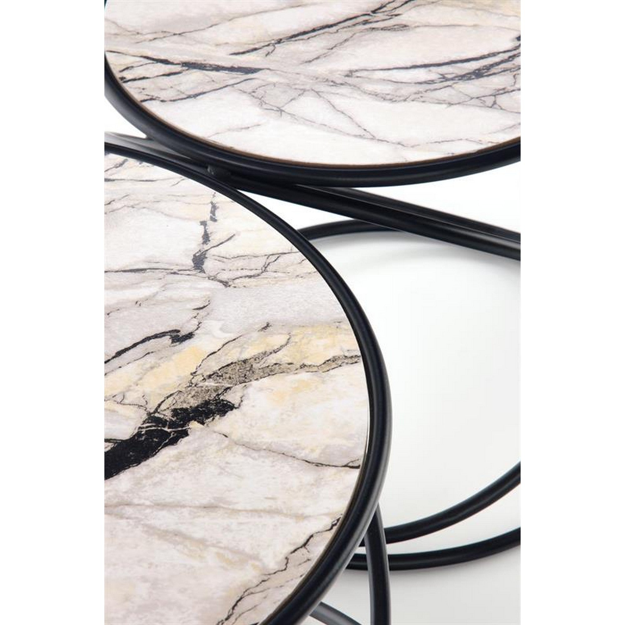 Set 2 masute de cafea Susanna, marmura alba/negru