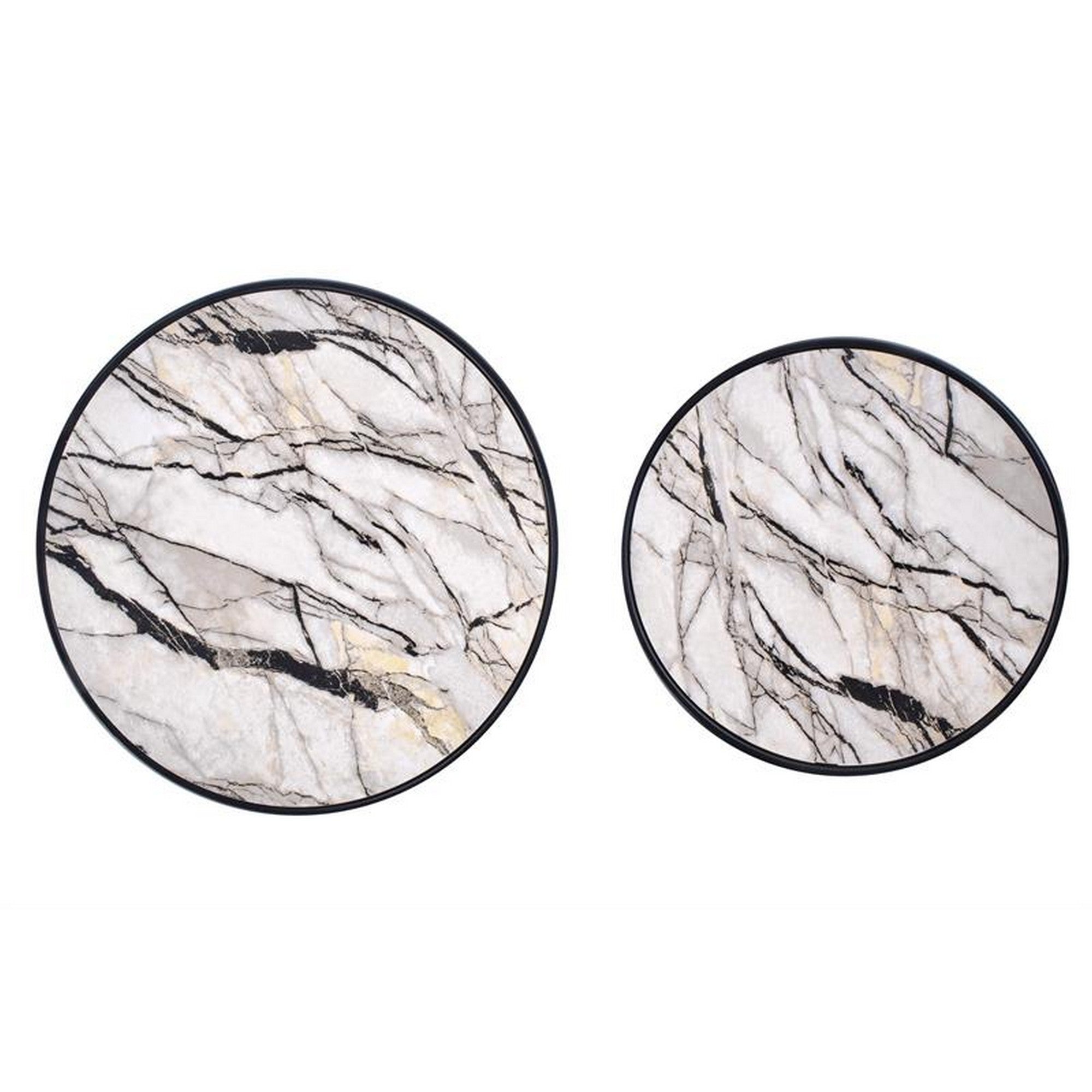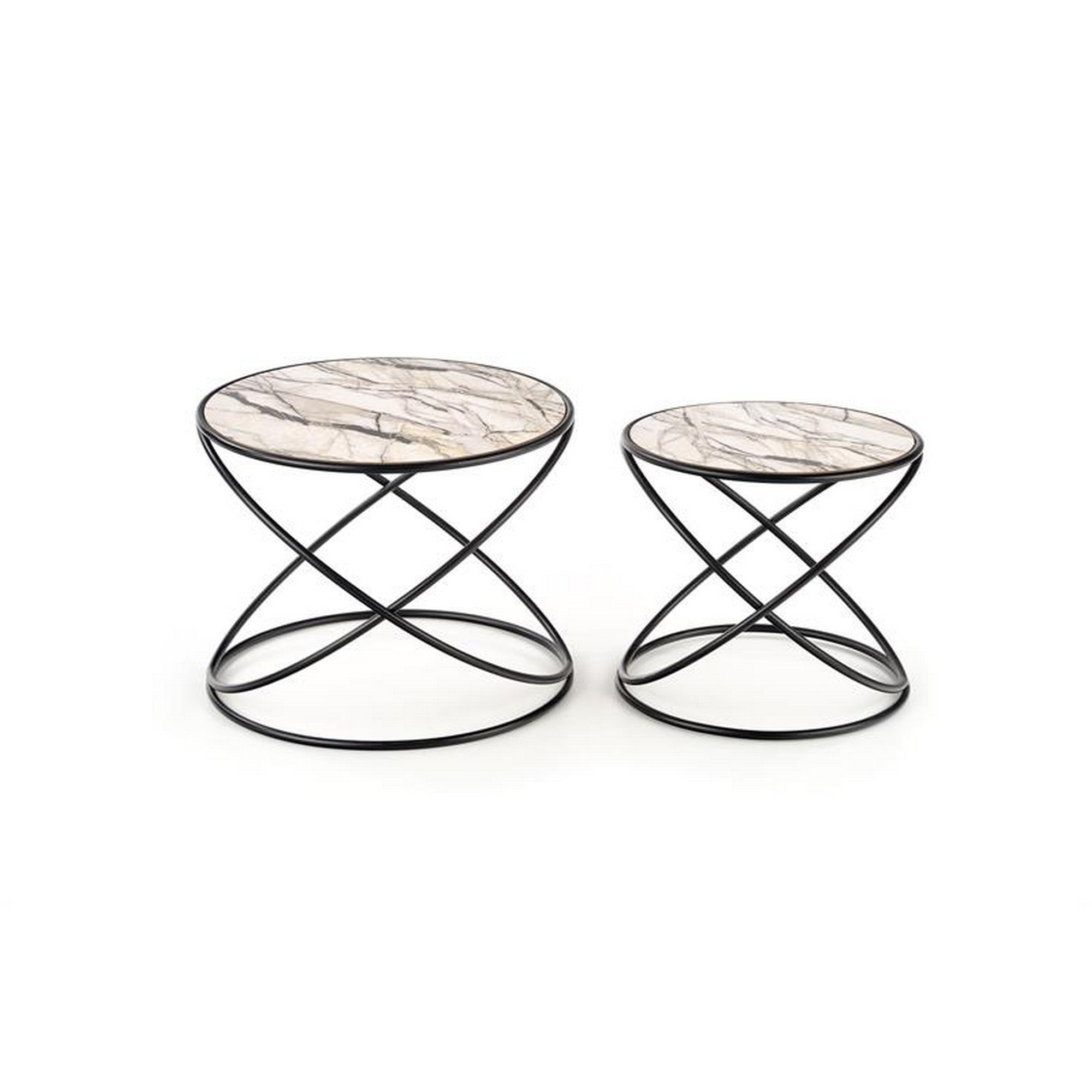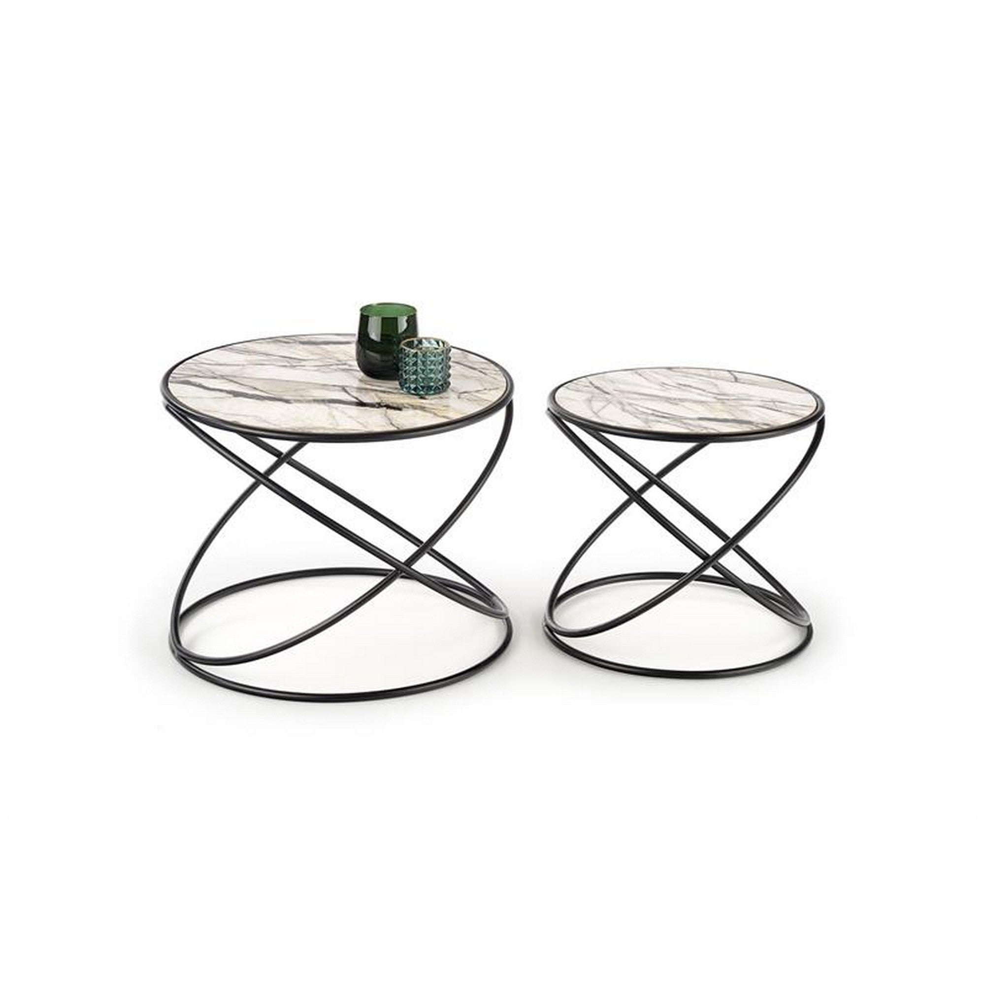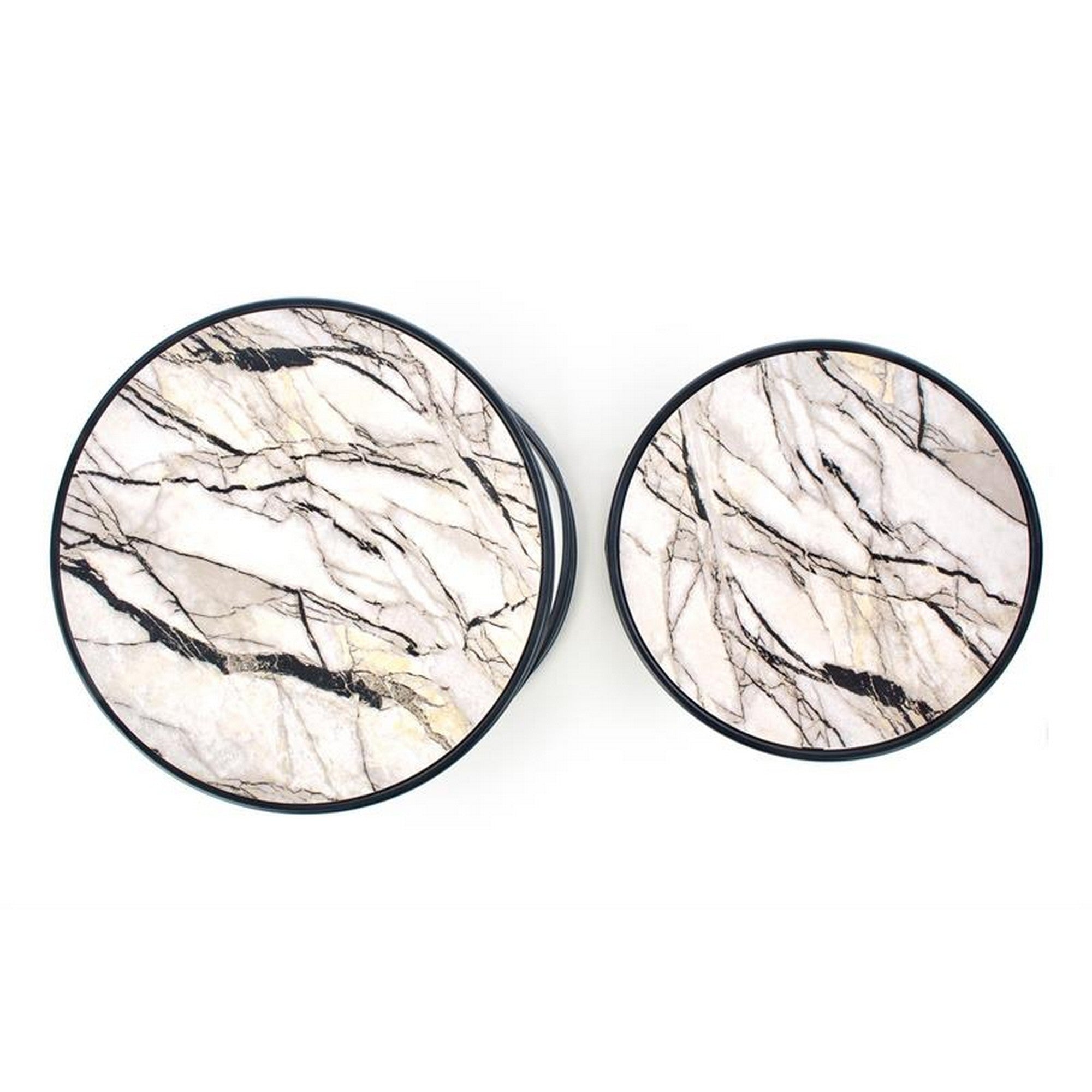 Set 2 masute de cafea Susanna, marmura alba/negru