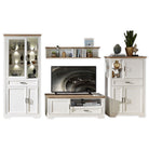 SET MOBILIER PENTRU LIVING JASMIN 2, ALB/STEJAR ARTISAN, PAL, FORMAT DIN: 2 COMODE, VITRINA SI O POLITA, 354X51X204 CM