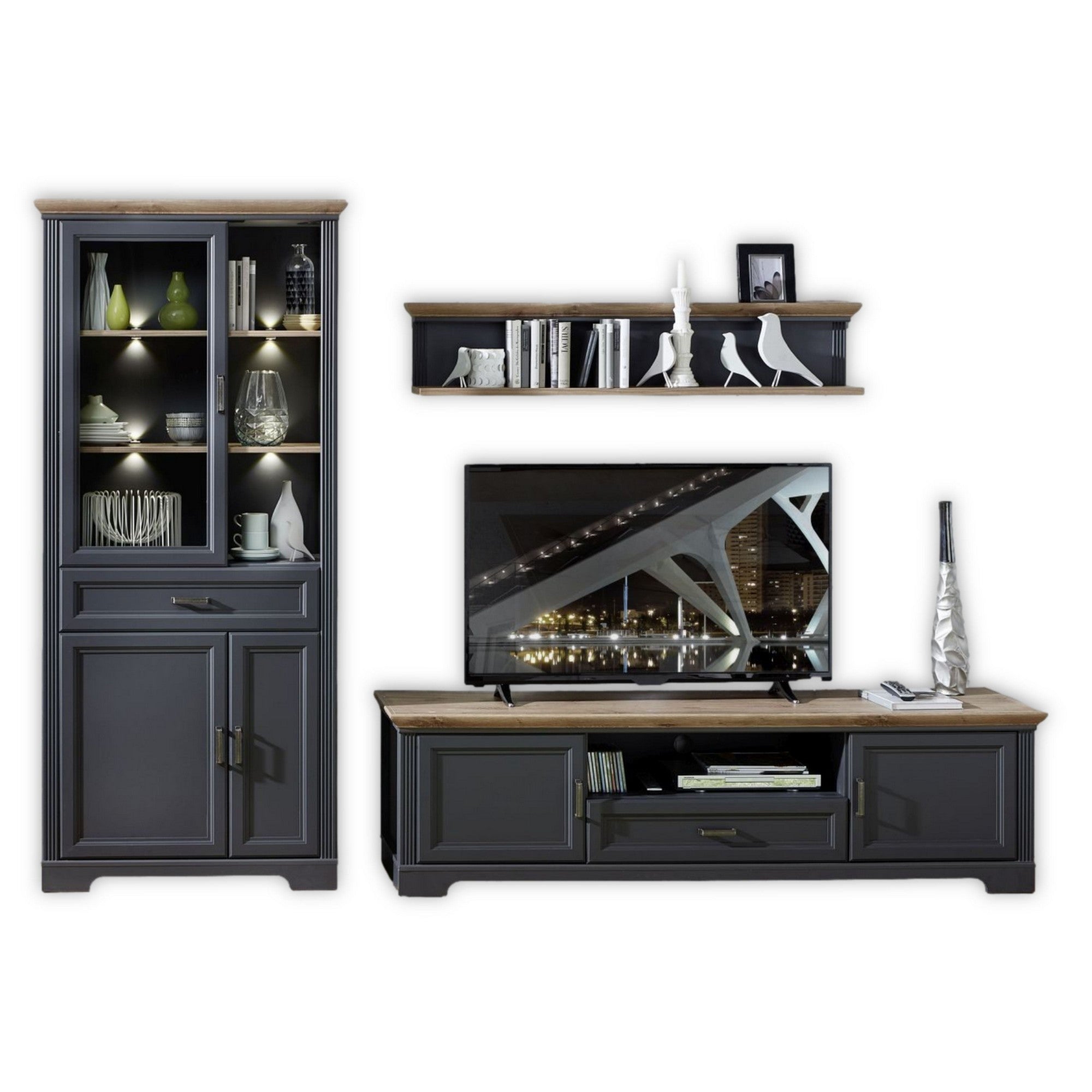 Set living JASMIN 3, gri grafit/stejar artisan, format din comoda TV, vitrina si o polita