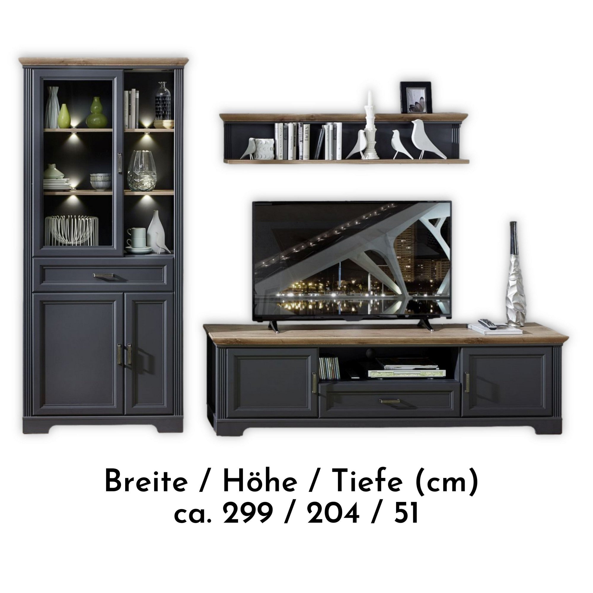 SET MOBILIER PENTRU LIVING JASMIN 3, GRI GRAFIT/STEJAR ARTISAN, PAL, FORMAT DIN: COMODA TV, VITRINA SI O POLITA, 299X51X204 CM