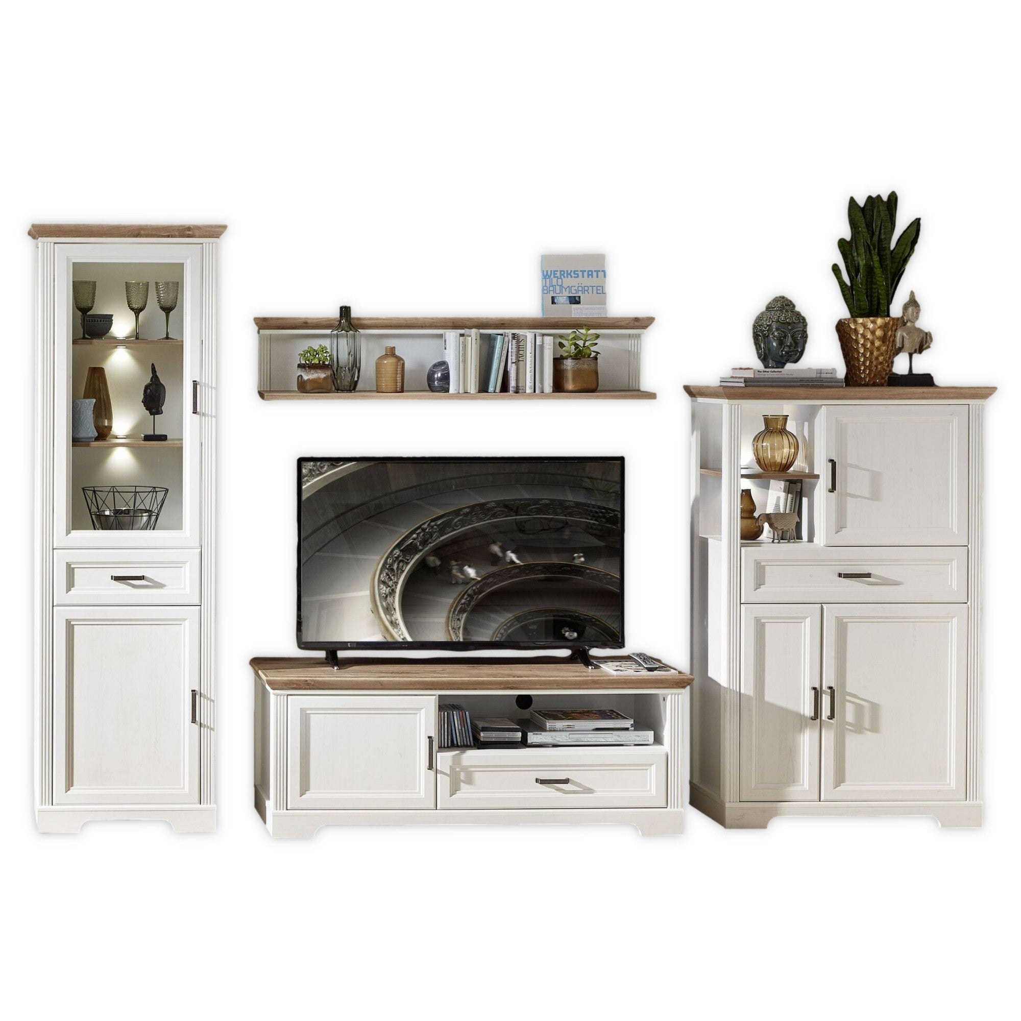 Set living JASMIN, alb/stejar artisan, format din 2 comode, vitrina si o polita