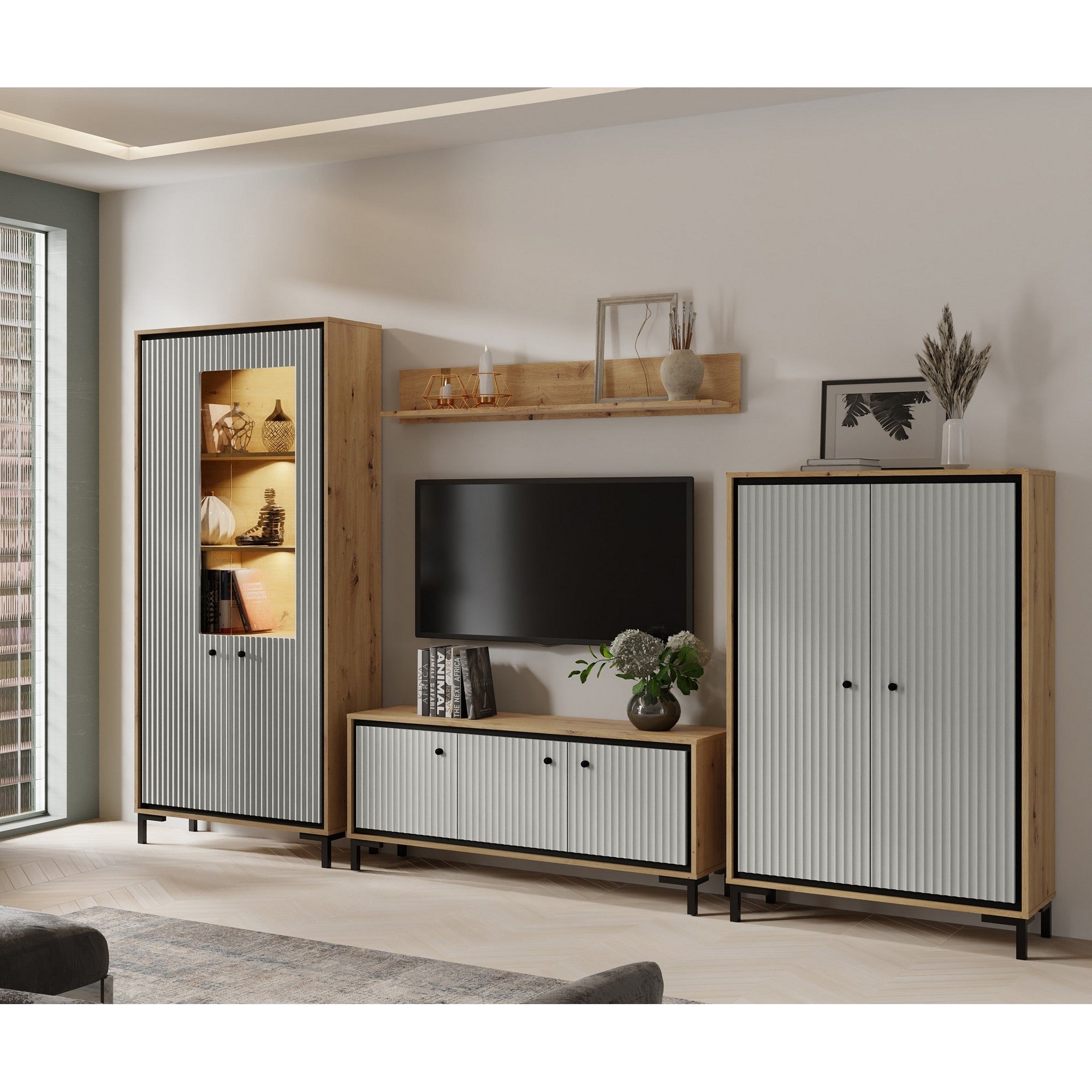 SET LIVING PARII A, STEJAR ARTISAN/GRI, PAL/STICLA, CU ILUMINARE LED, 308 CM