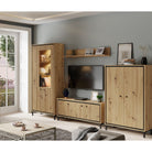 SET LIVING PARII A, STEJAR ARTISAN, PAL/STICLA, CU ILUMINARE LED, 308 CM
