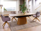 MASA EXTENSIBILA MONACO, PIATRA TRAVERTIN/STEJAR, 160/200X90X75 CM