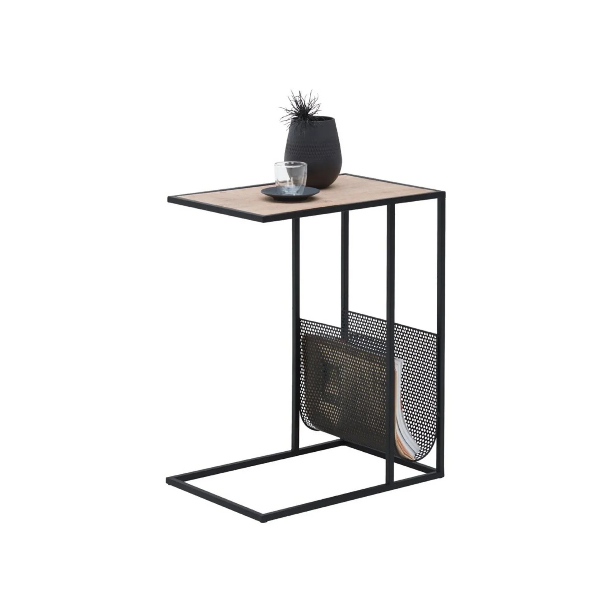 Masuta laterala ALEA, stejar/negru, lemn/metal, 49x33x61 cm