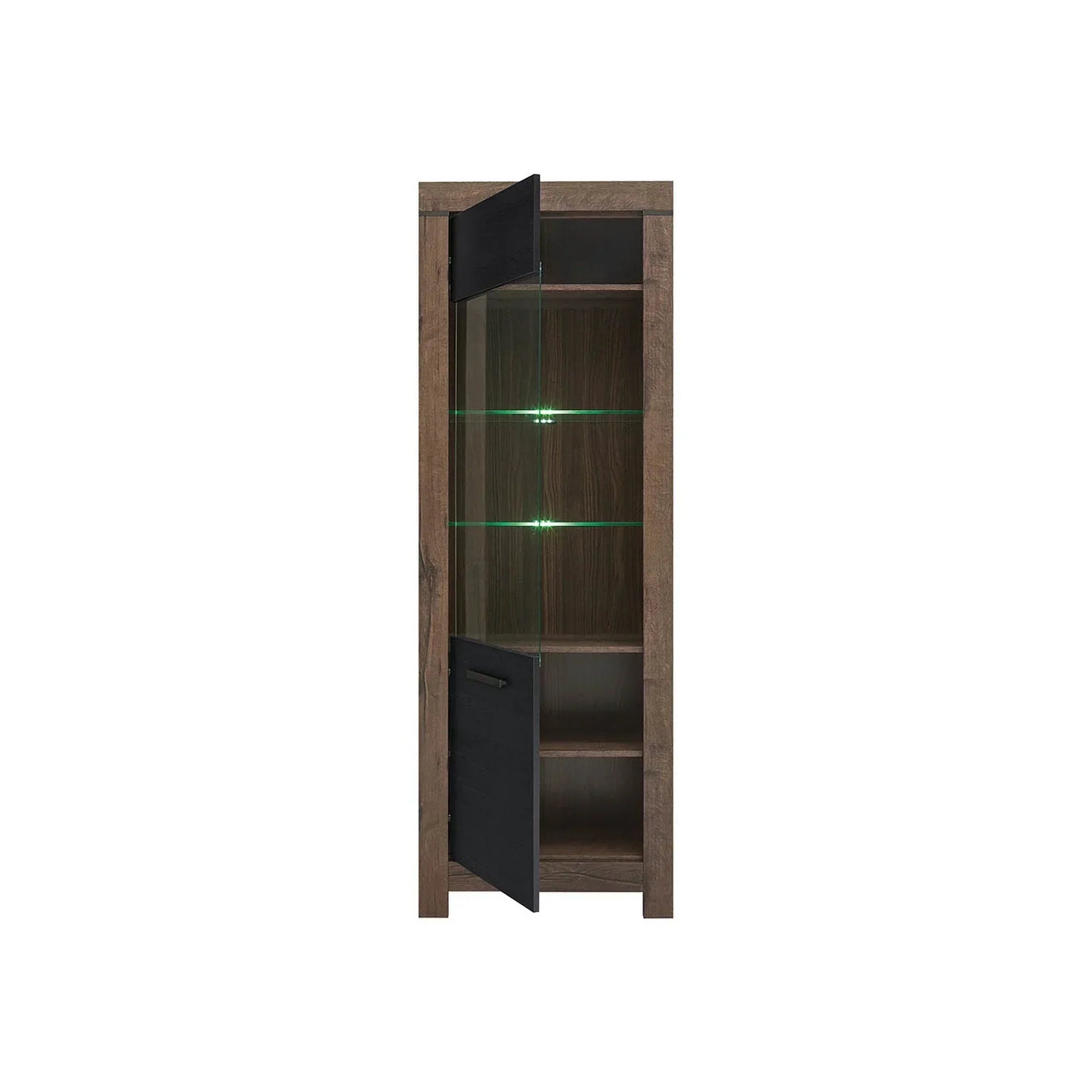 Vitrina BALIN, stejar/negru, PAL/sticla, cu iluminare LED, 68x40x197 cm