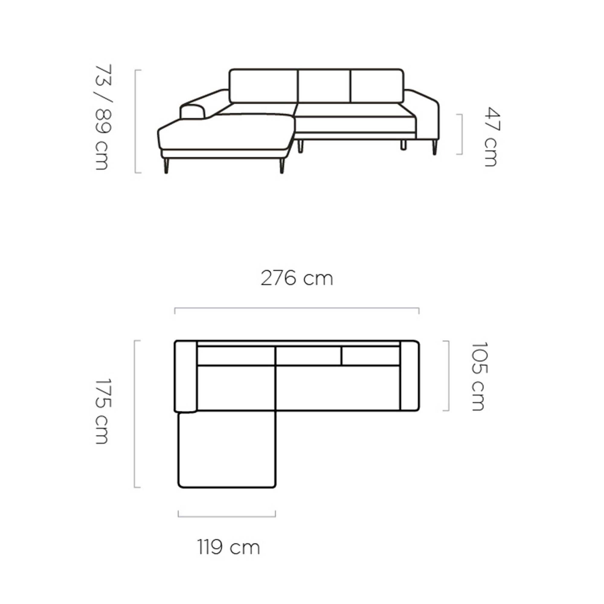 - Poate fi comandat cu sezlongul lung (coltul) pozitionat in partea dreapta a canapelei sau cu sezlongul (coltul) in partea stanga a canapelei. Pozitia sezlongului coltarului se alege dupa principiul "cum il privesc din fata"