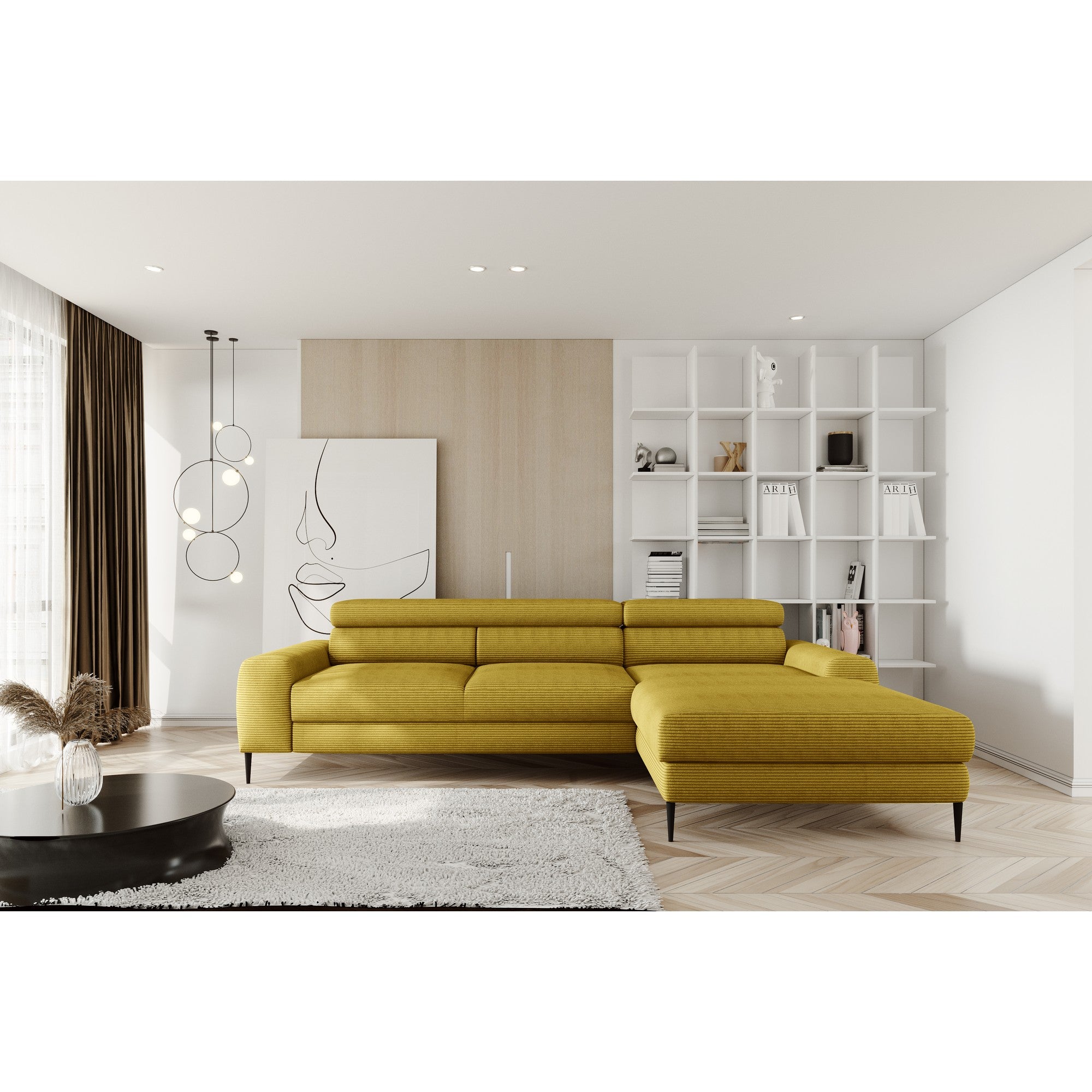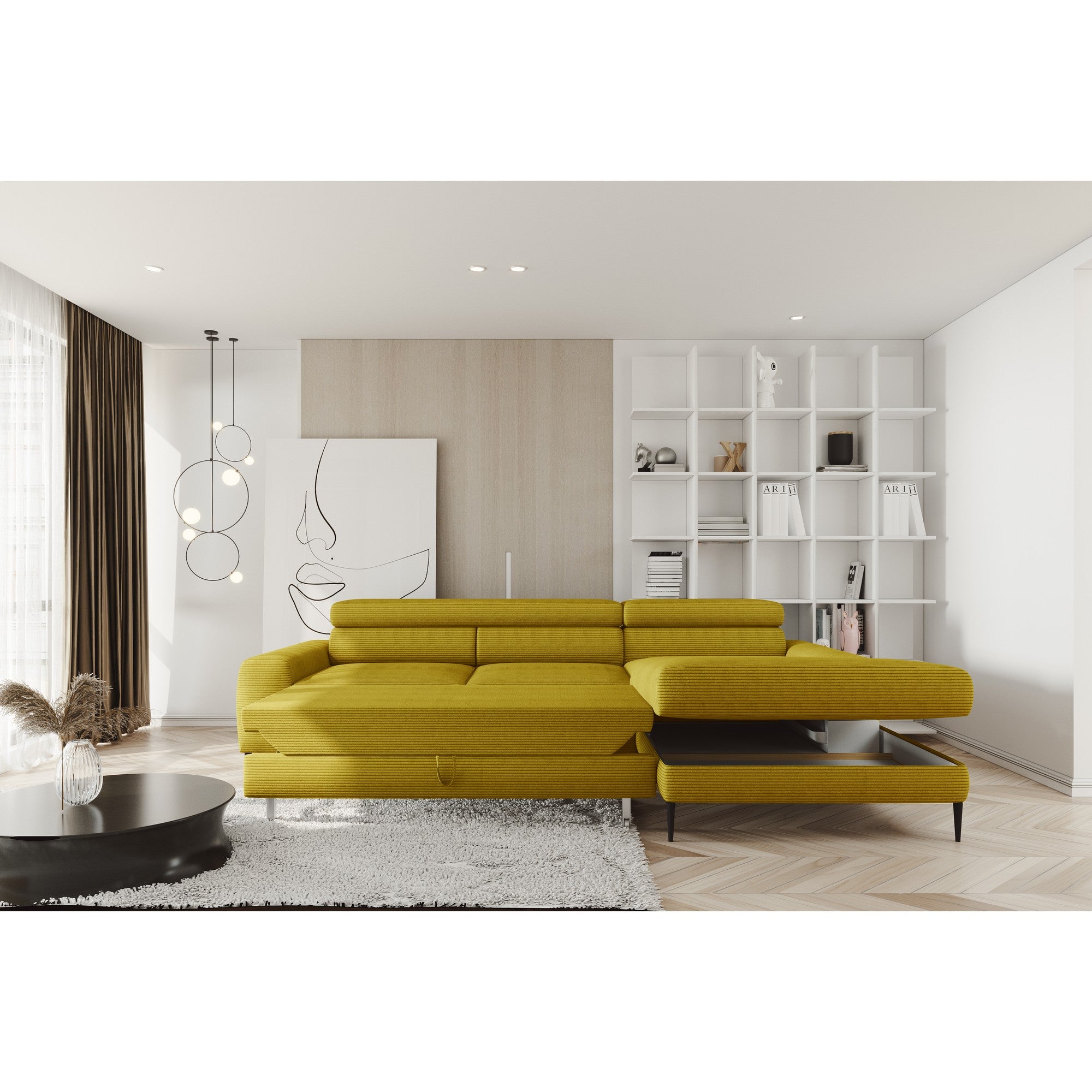 Coltar extensibil CALCIO MINI, personalizabil, lada depozitare, tetiere reglabile, 240x165x73/86 cm