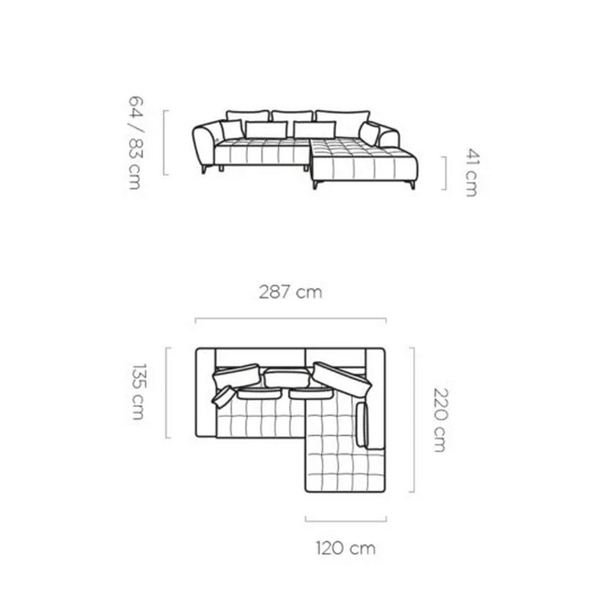 Coltar GARAY, personalizabil, 287x220x64/83 cm, reglaj electric