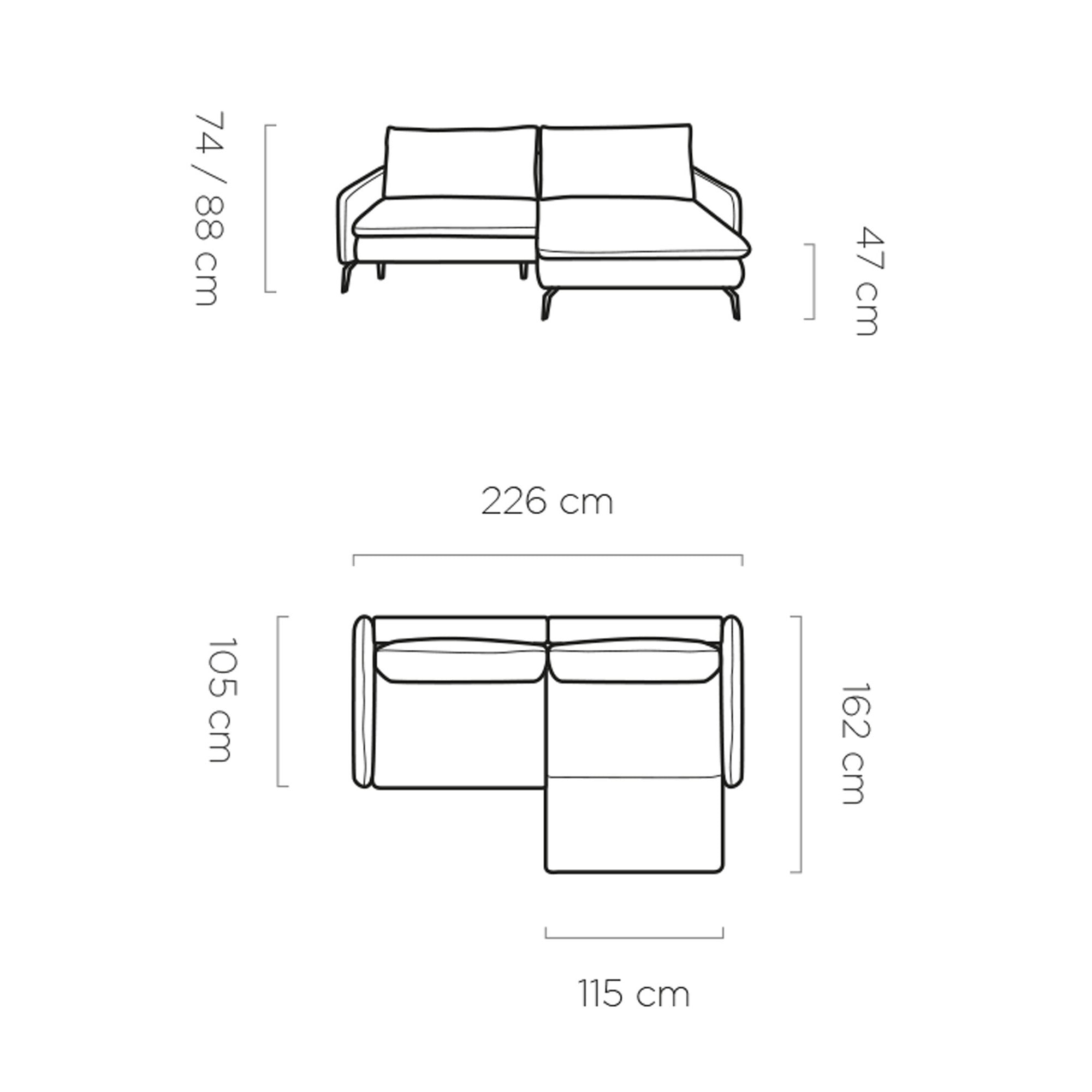- Poate fi comandat cu sezlongul lung (coltul) pozitionat in partea dreapta a canapelei sau cu sezlongul (coltul) in partea stanga a canapelei. Pozitia sezlongului coltarului se alege dupa principiul "cum il privesc din fata"