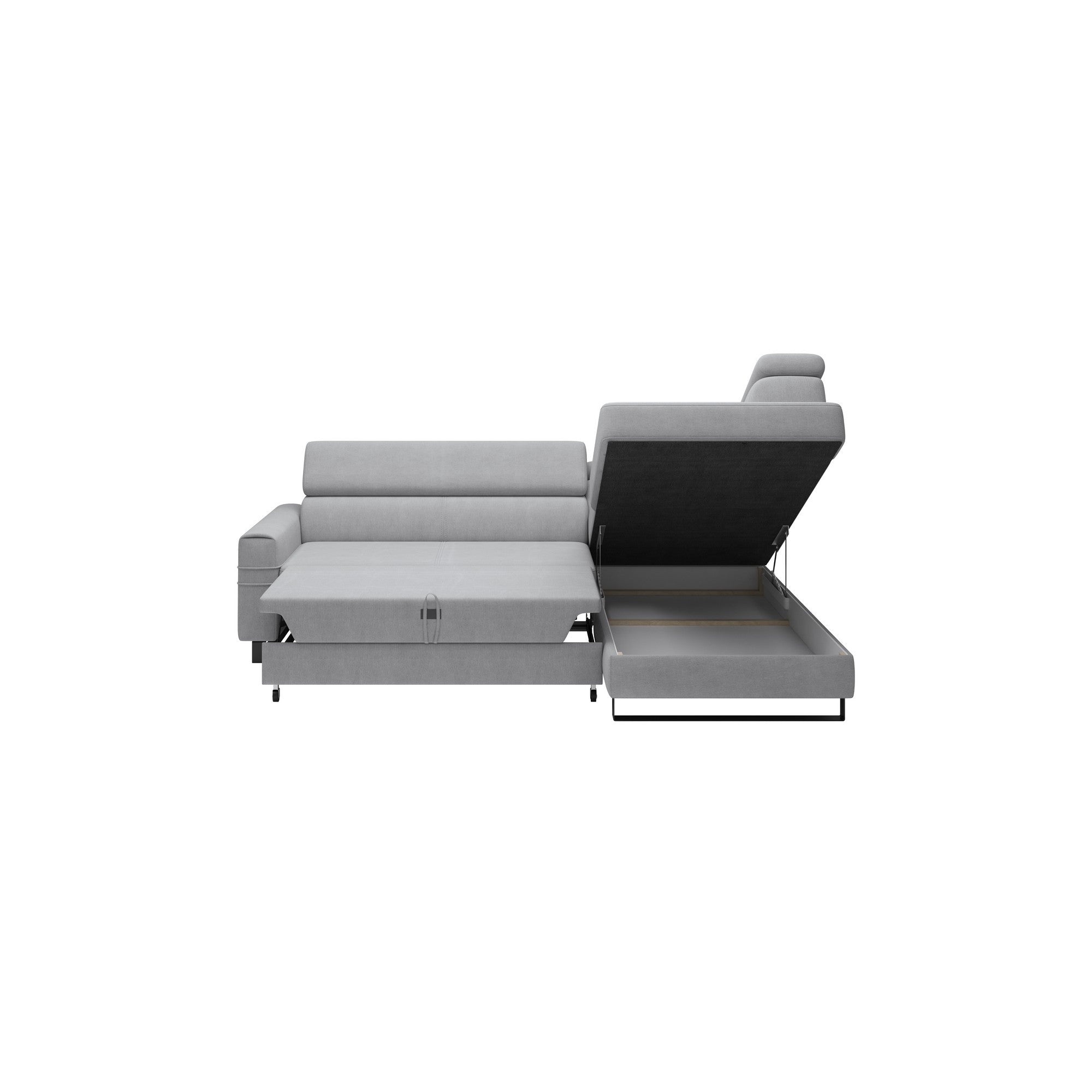 Coltar LIVIO, sezlong dreapta, stofa catifelata gri - Monolith 85, 249x184x90 cm, extensibil, lada depozitare, tetiere reglabile