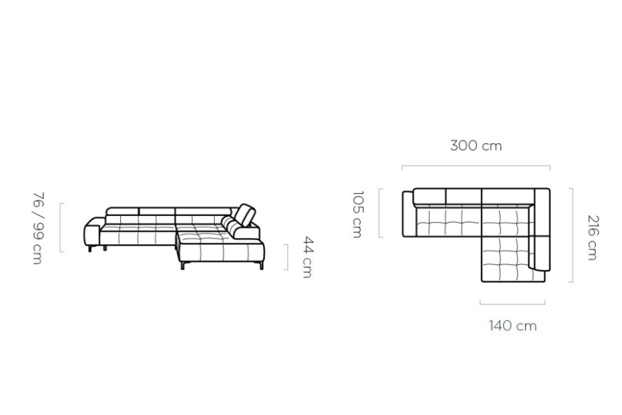 Coltar PLAZA L, personalizabil, 300x216x76/99 cm, reglaj electric, tetiere reglabile