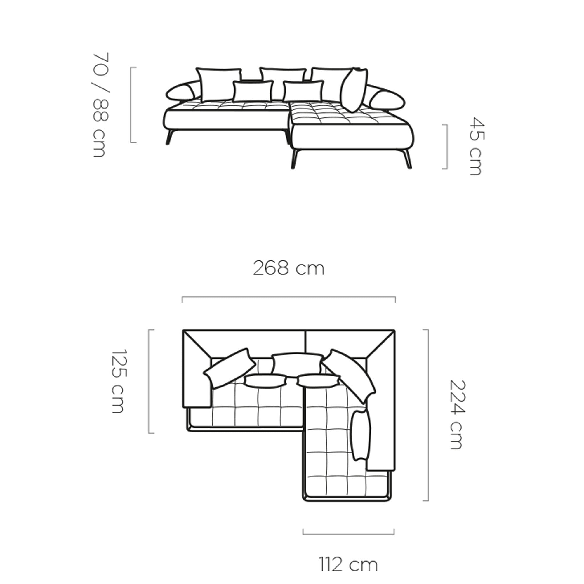 Coltar SELEDO L, personalizabil, 268x224x70/88 cm, reglaj electric