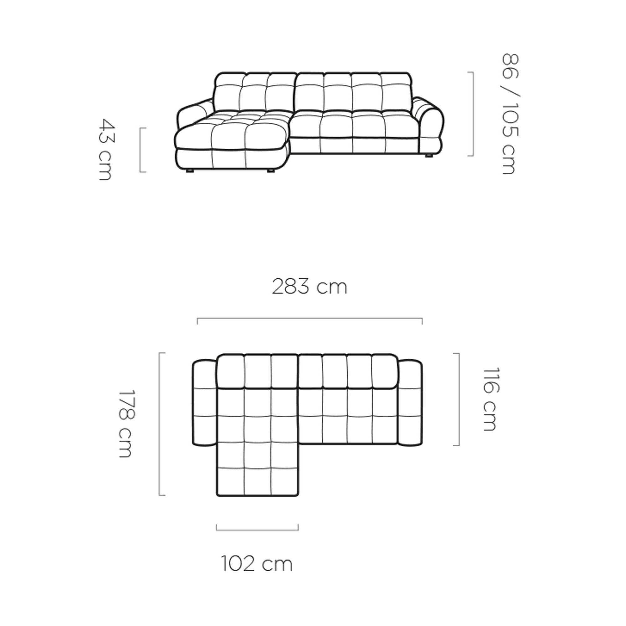 - Poate fi comandat cu sezlongul lung (coltul) pozitionat in partea dreapta a canapelei sau cu sezlongul (coltul) in partea stanga a canapelei. Pozitia sezlongului coltarului se alege dupa principiul "cum il privesc din fata"